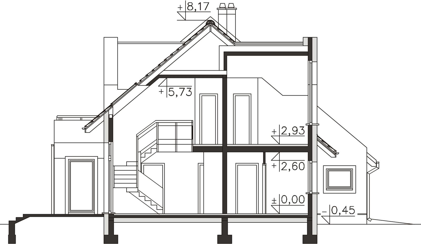 Fundamenty - rozwiązanie o podwyższonej izolacji termicznej. Ściany zewnętrzne - Bloczek silikatowy 18 cm + styropian 20 cm. Strop - gęstożebrowy. Dach - tradycyjna więźba ciesielska. Ogrzewanie - c.o. grzejnikowe + c.w.u. - kocioł gazowy. Wentylacja - rekuperacja.