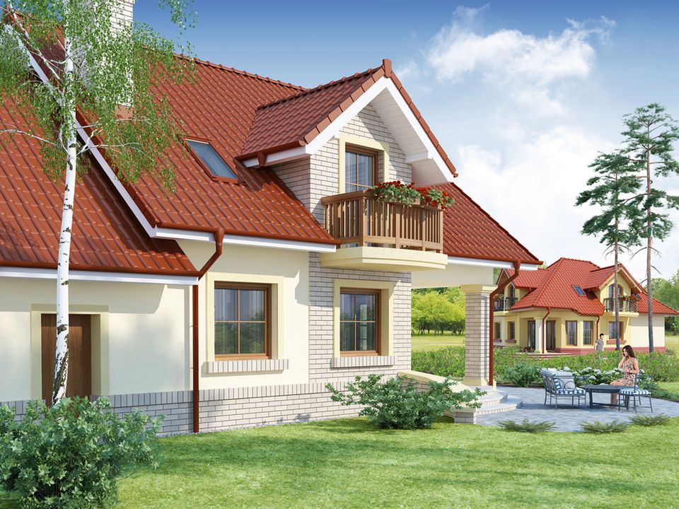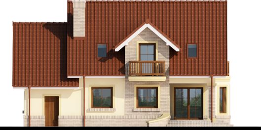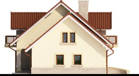 Graficzne opracowanie rzutów poglądowych widocznych na karcie projektu zostało wykonane przez Extradom.pl. Prezentowane przez Extradom.pl wizualizacje wykonane zostały przez autora projektu i należy poczytywać je jedynie za przykład i propozycję wykończenia, wizję architektoniczną autora projektu. Ostateczne wykończenie budynku może nastąpić na wiele sposobów. Szczegółowe rozwiązania zastosowane w oferowanej dokumentacji - w tym również ilość, lokalizacje i wygląd okien, drzwi, kominów - mogą w niewielkim stopniu różnić się od prezentowanej wizualizacji budynku.