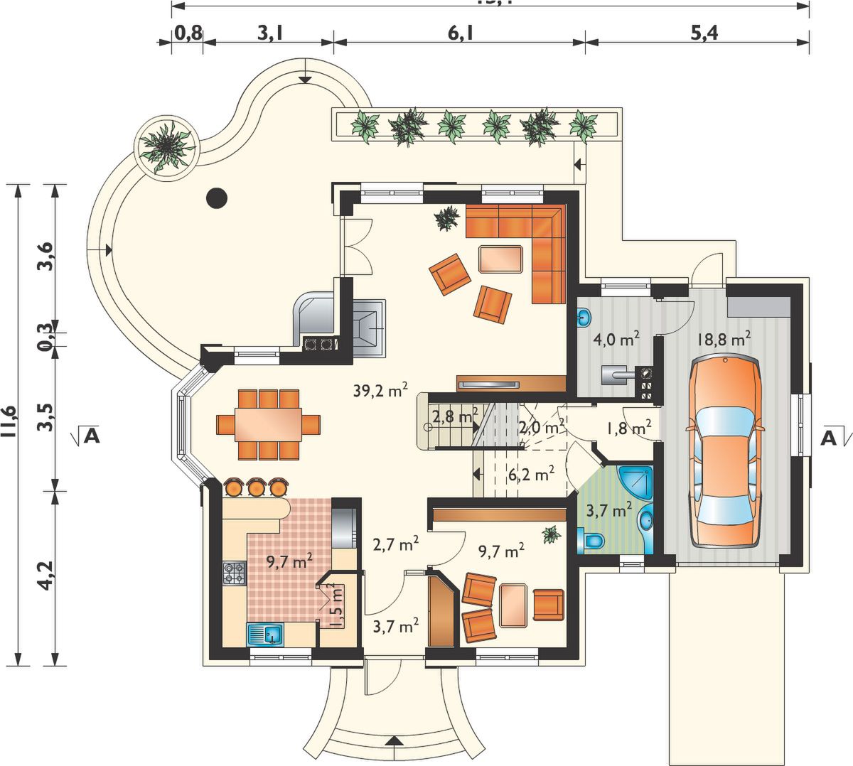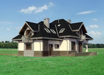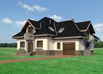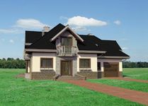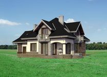 Graficzne opracowanie rzutów poglądowych widocznych na karcie projektu zostało wykonane przez Extradom.pl. Prezentowane przez Extradom.pl wizualizacje wykonane zostały przez autora projektu i należy poczytywać je jedynie za przykład i propozycję wykończenia, wizję architektoniczną autora projektu. Ostateczne wykończenie budynku może nastąpić na wiele sposobów. Szczegółowe rozwiązania zastosowane w oferowanej dokumentacji - w tym również ilość, lokalizacje i wygląd okien, drzwi, kominów - mogą w niewielkim stopniu różnić się od prezentowanej wizualizacji budynku.