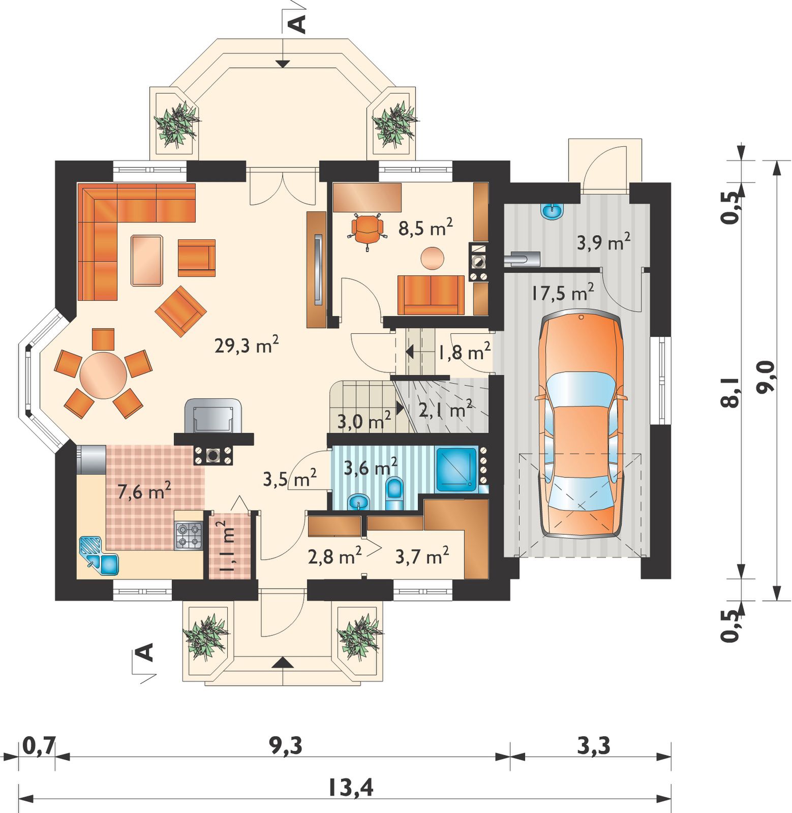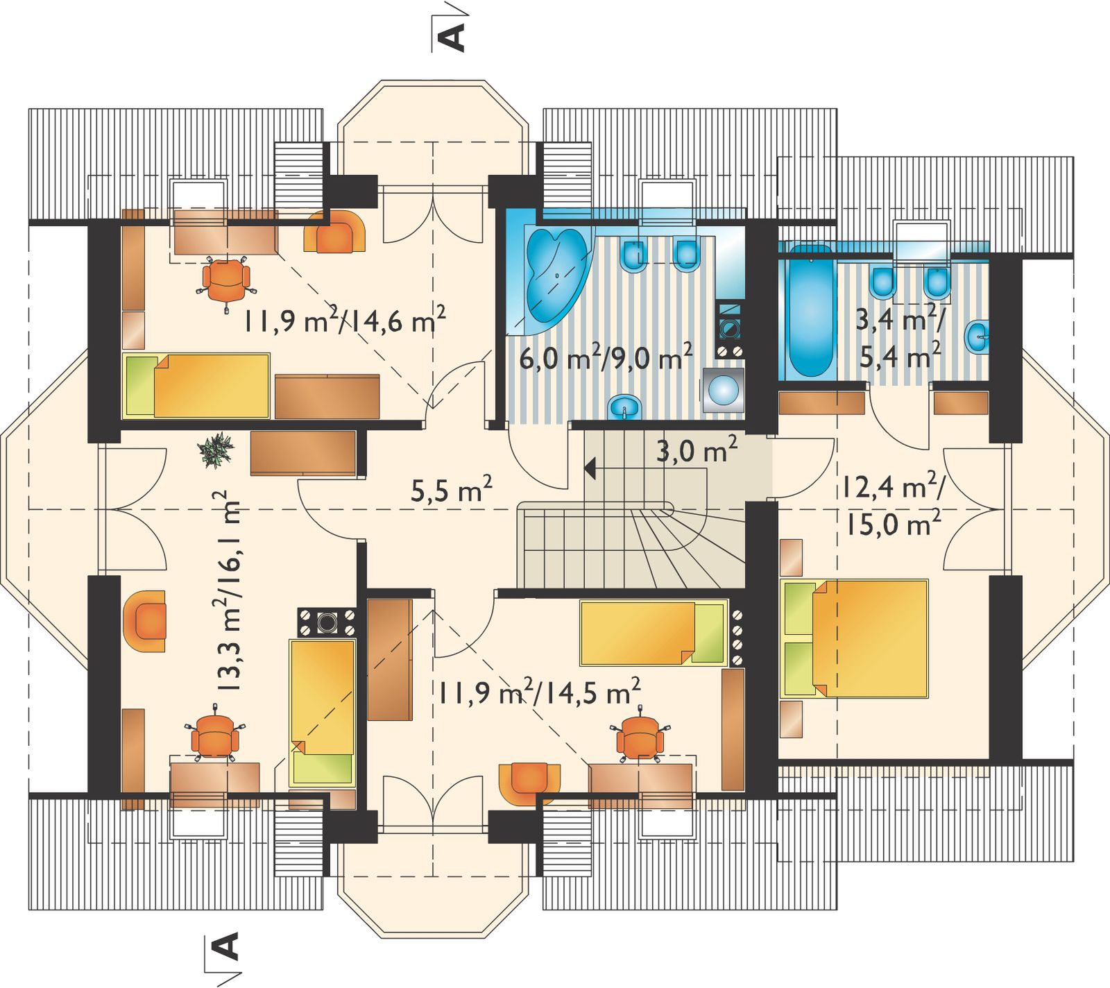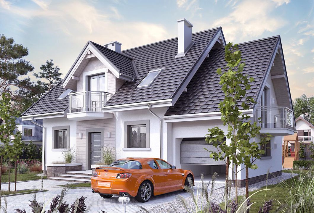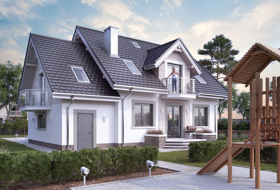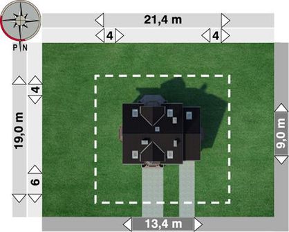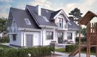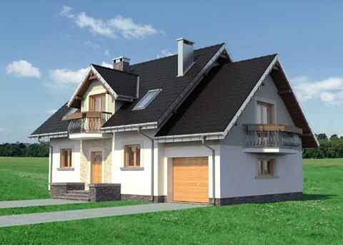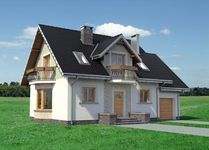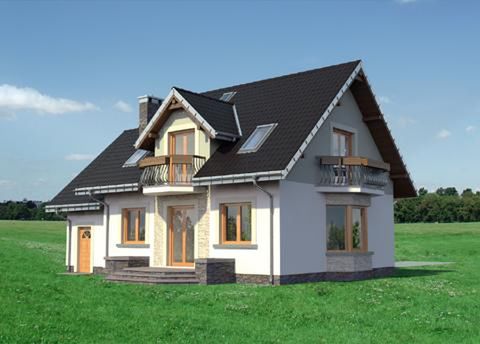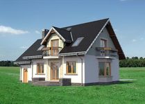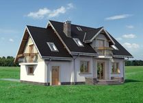 Graficzne opracowanie rzutów poglądowych widocznych na karcie projektu zostało wykonane przez Extradom.pl. Prezentowane przez Extradom.pl wizualizacje wykonane zostały przez autora projektu i należy poczytywać je jedynie za przykład i propozycję wykończenia, wizję architektoniczną autora projektu. Ostateczne wykończenie budynku może nastąpić na wiele sposobów. Szczegółowe rozwiązania zastosowane w oferowanej dokumentacji - w tym również ilość, lokalizacje i wygląd okien, drzwi, kominów - mogą w niewielkim stopniu różnić się od prezentowanej wizualizacji budynku.