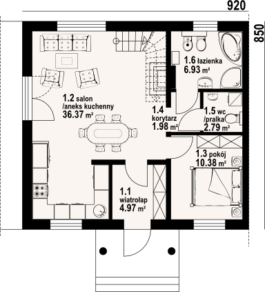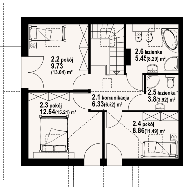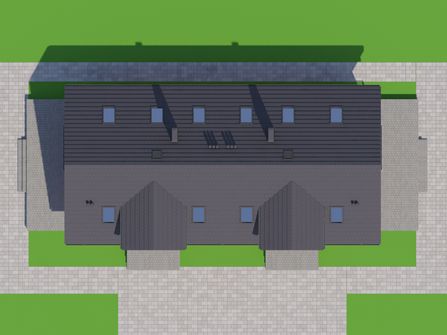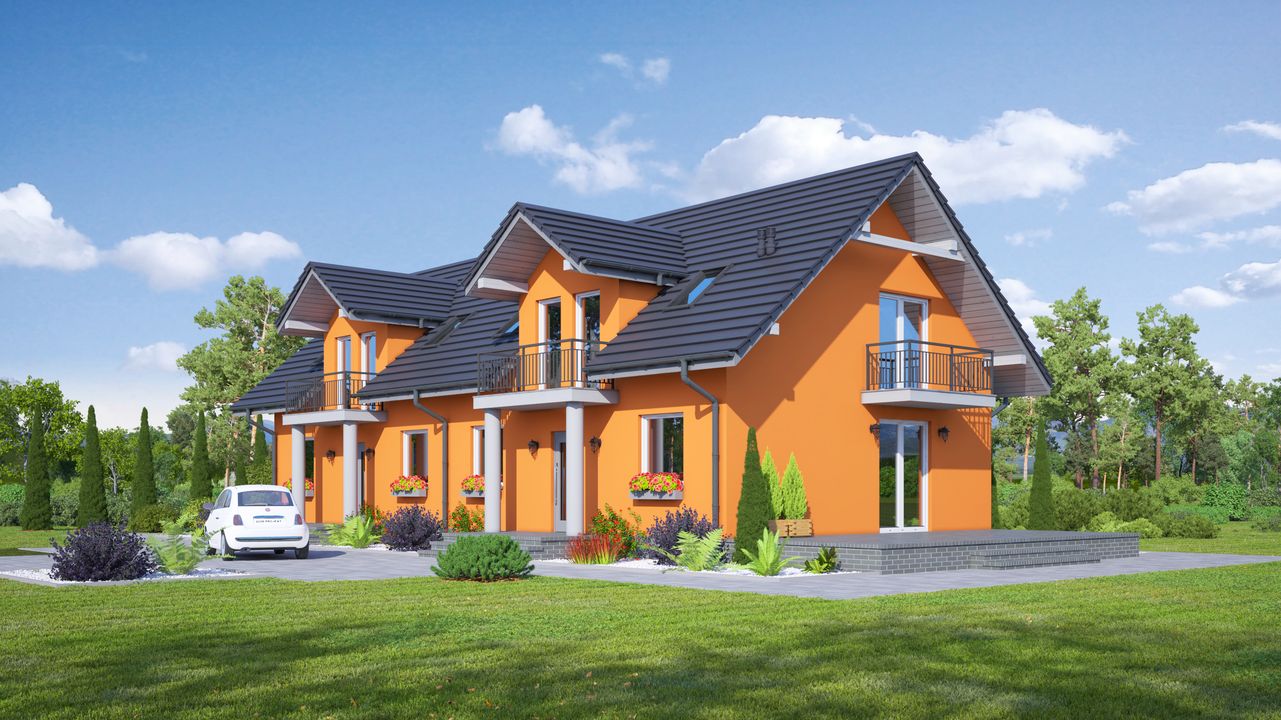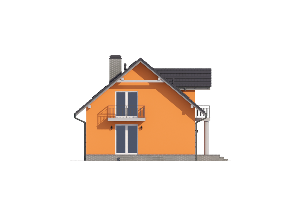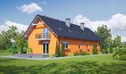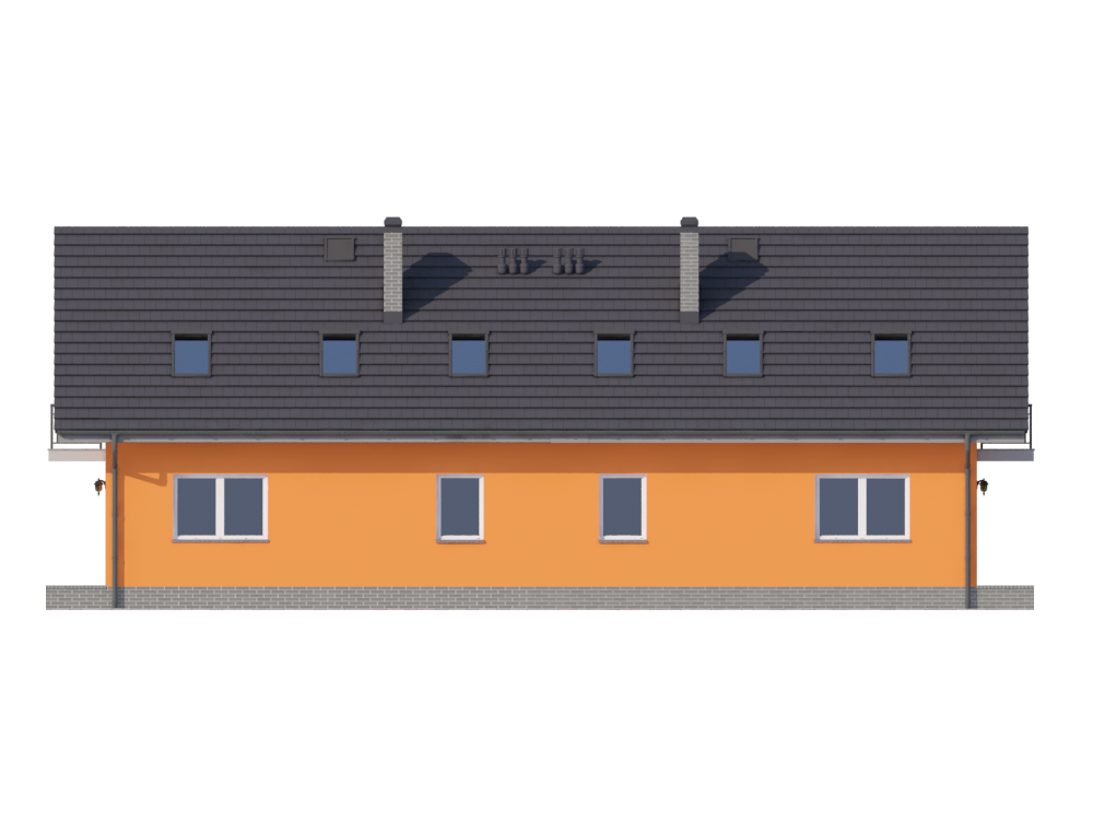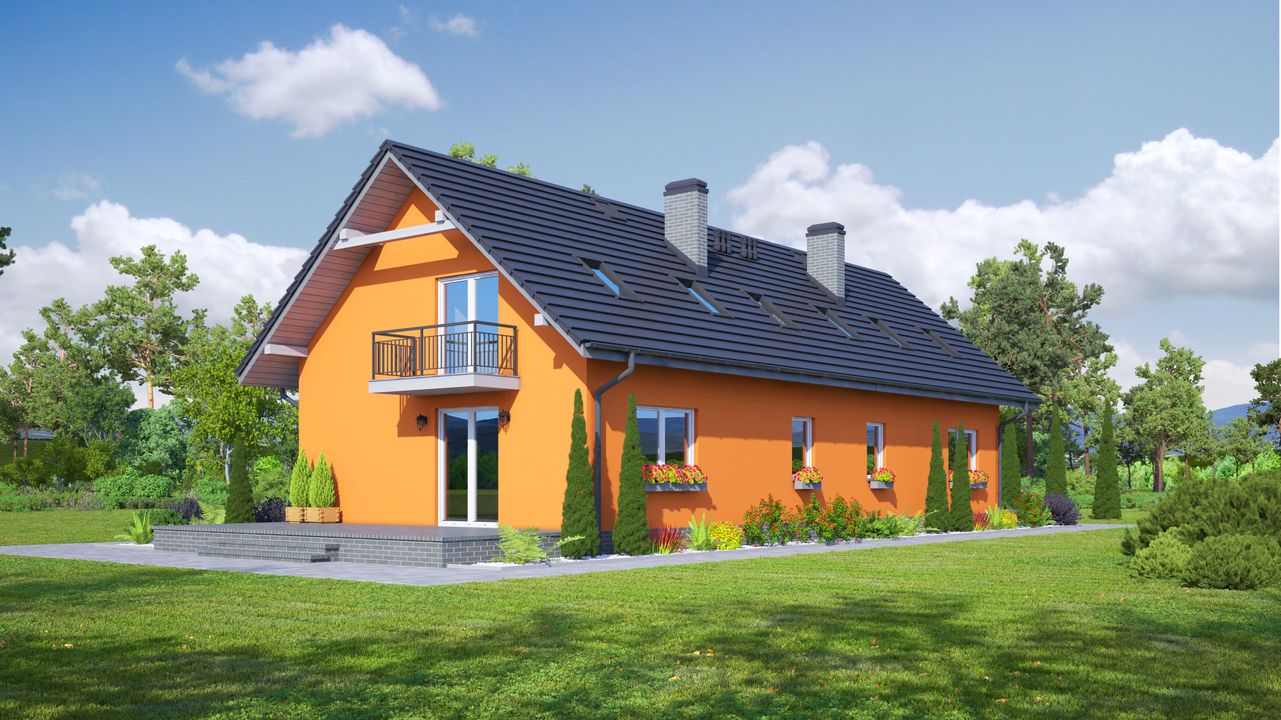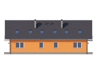 Graficzne opracowanie rzutów poglądowych widocznych na karcie projektu zostało wykonane przez Extradom.pl. Prezentowane przez Extradom.pl wizualizacje wykonane zostały przez autora projektu i należy poczytywać je jedynie za przykład i propozycję wykończenia, wizję architektoniczną autora projektu. Ostateczne wykończenie budynku może nastąpić na wiele sposobów. Szczegółowe rozwiązania zastosowane w oferowanej dokumentacji - w tym również ilość, lokalizacje i wygląd okien, drzwi, kominów - mogą w niewielkim stopniu różnić się od prezentowanej wizualizacji budynku.