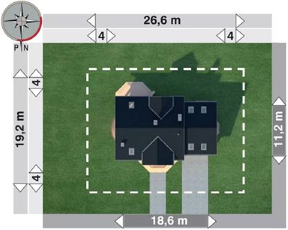 Graficzne opracowanie rzutów poglądowych widocznych na karcie projektu zostało wykonane przez Extradom.pl. Prezentowane przez Extradom.pl wizualizacje wykonane zostały przez autora projektu i należy poczytywać je jedynie za przykład i propozycję wykończenia, wizję architektoniczną autora projektu. Ostateczne wykończenie budynku może nastąpić na wiele sposobów. Szczegółowe rozwiązania zastosowane w oferowanej dokumentacji - w tym również ilość, lokalizacje i wygląd okien, drzwi, kominów - mogą w niewielkim stopniu różnić się od prezentowanej wizualizacji budynku.