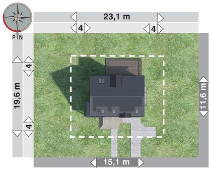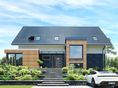 Graficzne opracowanie rzutów poglądowych widocznych na karcie projektu zostało wykonane przez Extradom.pl. Prezentowane przez Extradom.pl wizualizacje wykonane zostały przez autora projektu i należy poczytywać je jedynie za przykład i propozycję wykończenia, wizję architektoniczną autora projektu. Ostateczne wykończenie budynku może nastąpić na wiele sposobów. Szczegółowe rozwiązania zastosowane w oferowanej dokumentacji - w tym również ilość, lokalizacje i wygląd okien, drzwi, kominów - mogą w niewielkim stopniu różnić się od prezentowanej wizualizacji budynku.
