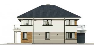 Graficzne opracowanie rzutów poglądowych widocznych na karcie projektu zostało wykonane przez Extradom.pl. Prezentowane przez Extradom.pl wizualizacje wykonane zostały przez autora projektu i należy poczytywać je jedynie za przykład i propozycję wykończenia, wizję architektoniczną autora projektu. Ostateczne wykończenie budynku może nastąpić na wiele sposobów. Szczegółowe rozwiązania zastosowane w oferowanej dokumentacji - w tym również ilość, lokalizacje i wygląd okien, drzwi, kominów - mogą w niewielkim stopniu różnić się od prezentowanej wizualizacji budynku.