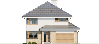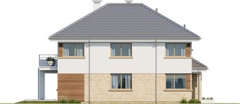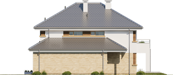 Graficzne opracowanie rzutów poglądowych widocznych na karcie projektu zostało wykonane przez Extradom.pl. Prezentowane przez Extradom.pl wizualizacje wykonane zostały przez autora projektu i należy poczytywać je jedynie za przykład i propozycję wykończenia, wizję architektoniczną autora projektu. Ostateczne wykończenie budynku może nastąpić na wiele sposobów. Szczegółowe rozwiązania zastosowane w oferowanej dokumentacji - w tym również ilość, lokalizacje i wygląd okien, drzwi, kominów - mogą w niewielkim stopniu różnić się od prezentowanej wizualizacji budynku.