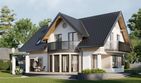 Graficzne opracowanie rzutów poglądowych widocznych na karcie projektu zostało wykonane przez Extradom.pl. Prezentowane przez Extradom.pl wizualizacje wykonane zostały przez autora projektu i należy poczytywać je jedynie za przykład i propozycję wykończenia, wizję architektoniczną autora projektu. Ostateczne wykończenie budynku może nastąpić na wiele sposobów. Szczegółowe rozwiązania zastosowane w oferowanej dokumentacji - w tym również ilość, lokalizacje i wygląd okien, drzwi, kominów - mogą w niewielkim stopniu różnić się od prezentowanej wizualizacji budynku.