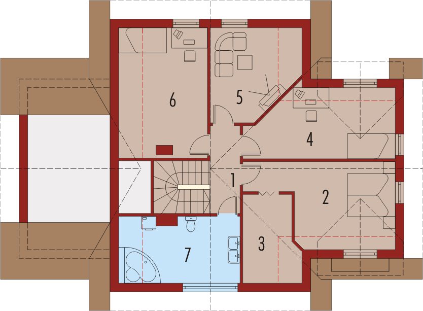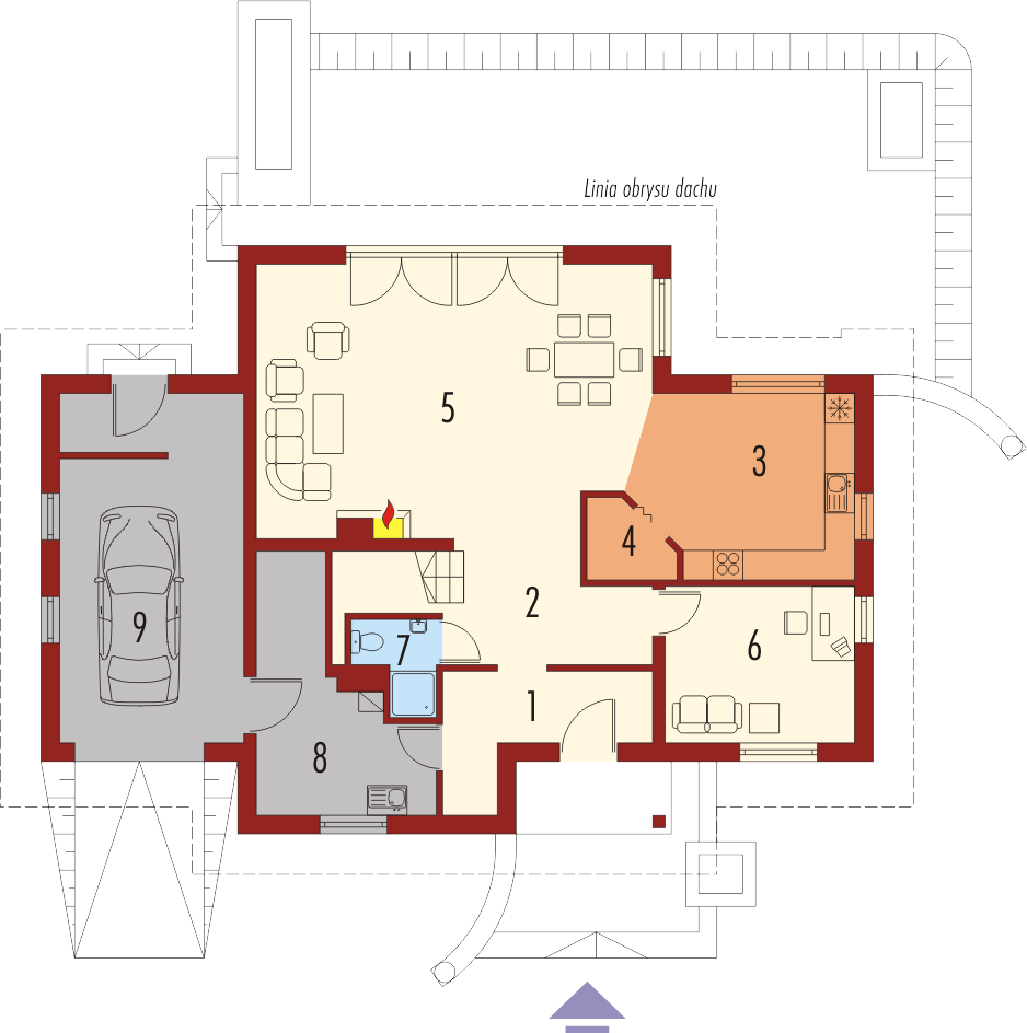 Graficzne opracowanie rzutów poglądowych widocznych na karcie projektu zostało wykonane przez Extradom.pl. Prezentowane przez Extradom.pl wizualizacje wykonane zostały przez autora projektu i należy poczytywać je jedynie za przykład i propozycję wykończenia, wizję architektoniczną autora projektu. Ostateczne wykończenie budynku może nastąpić na wiele sposobów. Szczegółowe rozwiązania zastosowane w oferowanej dokumentacji - w tym również ilość, lokalizacje i wygląd okien, drzwi, kominów - mogą w niewielkim stopniu różnić się od prezentowanej wizualizacji budynku.
