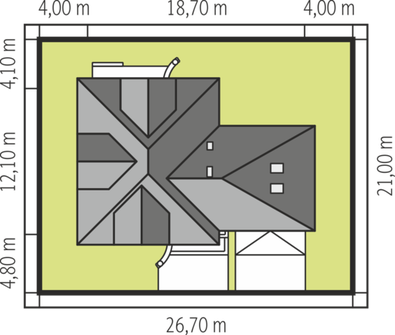 Graficzne opracowanie rzutów poglądowych widocznych na karcie projektu zostało wykonane przez Extradom.pl. Prezentowane przez Extradom.pl wizualizacje wykonane zostały przez autora projektu i należy poczytywać je jedynie za przykład i propozycję wykończenia, wizję architektoniczną autora projektu. Ostateczne wykończenie budynku może nastąpić na wiele sposobów. Szczegółowe rozwiązania zastosowane w oferowanej dokumentacji - w tym również ilość, lokalizacje i wygląd okien, drzwi, kominów - mogą w niewielkim stopniu różnić się od prezentowanej wizualizacji budynku.