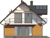 Graficzne opracowanie rzutów poglądowych widocznych na karcie projektu zostało wykonane przez Extradom.pl. Prezentowane przez Extradom.pl wizualizacje wykonane zostały przez autora projektu i należy poczytywać je jedynie za przykład i propozycję wykończenia, wizję architektoniczną autora projektu. Ostateczne wykończenie budynku może nastąpić na wiele sposobów. Szczegółowe rozwiązania zastosowane w oferowanej dokumentacji - w tym również ilość, lokalizacje i wygląd okien, drzwi, kominów - mogą w niewielkim stopniu różnić się od prezentowanej wizualizacji budynku.