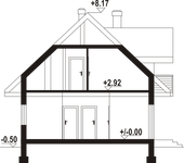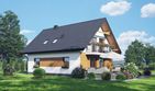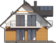 Graficzne opracowanie rzutów poglądowych widocznych na karcie projektu zostało wykonane przez Extradom.pl. Prezentowane przez Extradom.pl wizualizacje wykonane zostały przez autora projektu i należy poczytywać je jedynie za przykład i propozycję wykończenia, wizję architektoniczną autora projektu. Ostateczne wykończenie budynku może nastąpić na wiele sposobów. Szczegółowe rozwiązania zastosowane w oferowanej dokumentacji - w tym również ilość, lokalizacje i wygląd okien, drzwi, kominów - mogą w niewielkim stopniu różnić się od prezentowanej wizualizacji budynku.
