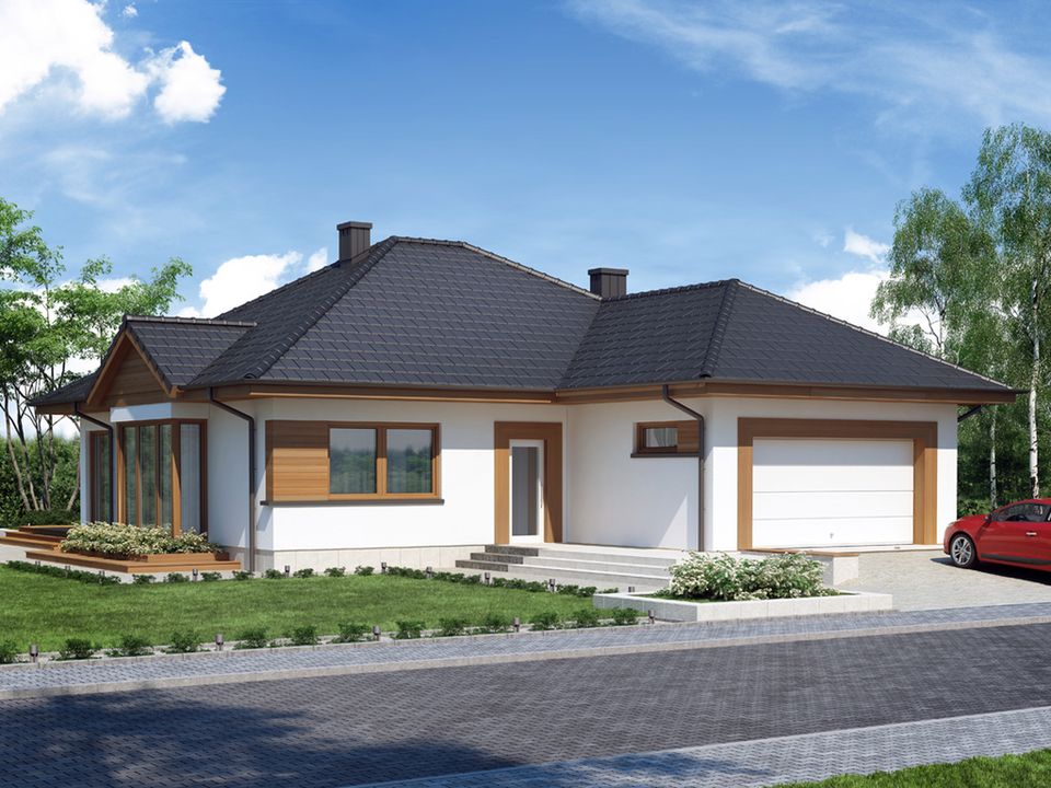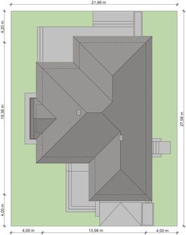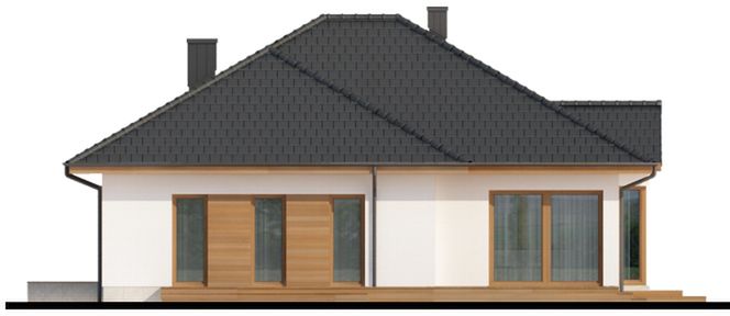 Graficzne opracowanie rzutów poglądowych widocznych na karcie projektu zostało wykonane przez Extradom.pl. Prezentowane przez Extradom.pl wizualizacje wykonane zostały przez autora projektu i należy poczytywać je jedynie za przykład i propozycję wykończenia, wizję architektoniczną autora projektu. Ostateczne wykończenie budynku może nastąpić na wiele sposobów. Szczegółowe rozwiązania zastosowane w oferowanej dokumentacji - w tym również ilość, lokalizacje i wygląd okien, drzwi, kominów - mogą w niewielkim stopniu różnić się od prezentowanej wizualizacji budynku.