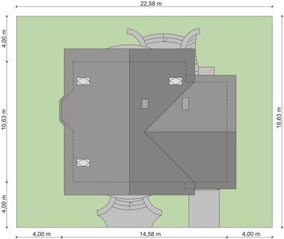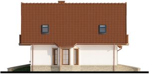 Graficzne opracowanie rzutów poglądowych widocznych na karcie projektu zostało wykonane przez Extradom.pl. Prezentowane przez Extradom.pl wizualizacje wykonane zostały przez autora projektu i należy poczytywać je jedynie za przykład i propozycję wykończenia, wizję architektoniczną autora projektu. Ostateczne wykończenie budynku może nastąpić na wiele sposobów. Szczegółowe rozwiązania zastosowane w oferowanej dokumentacji - w tym również ilość, lokalizacje i wygląd okien, drzwi, kominów - mogą w niewielkim stopniu różnić się od prezentowanej wizualizacji budynku.