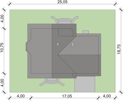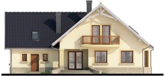 Graficzne opracowanie rzutów poglądowych widocznych na karcie projektu zostało wykonane przez Extradom.pl. Prezentowane przez Extradom.pl wizualizacje wykonane zostały przez autora projektu i należy poczytywać je jedynie za przykład i propozycję wykończenia, wizję architektoniczną autora projektu. Ostateczne wykończenie budynku może nastąpić na wiele sposobów. Szczegółowe rozwiązania zastosowane w oferowanej dokumentacji - w tym również ilość, lokalizacje i wygląd okien, drzwi, kominów - mogą w niewielkim stopniu różnić się od prezentowanej wizualizacji budynku.