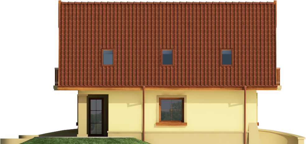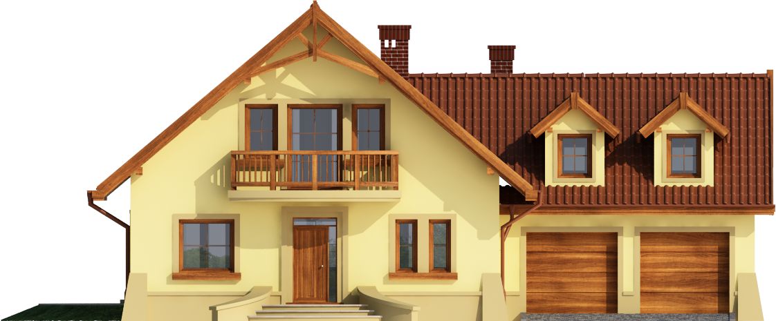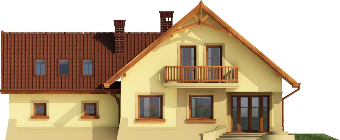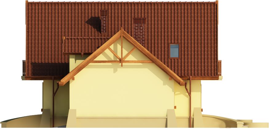 Graficzne opracowanie rzutów poglądowych widocznych na karcie projektu zostało wykonane przez Extradom.pl. Prezentowane przez Extradom.pl wizualizacje wykonane zostały przez autora projektu i należy poczytywać je jedynie za przykład i propozycję wykończenia, wizję architektoniczną autora projektu. Ostateczne wykończenie budynku może nastąpić na wiele sposobów. Szczegółowe rozwiązania zastosowane w oferowanej dokumentacji - w tym również ilość, lokalizacje i wygląd okien, drzwi, kominów - mogą w niewielkim stopniu różnić się od prezentowanej wizualizacji budynku.