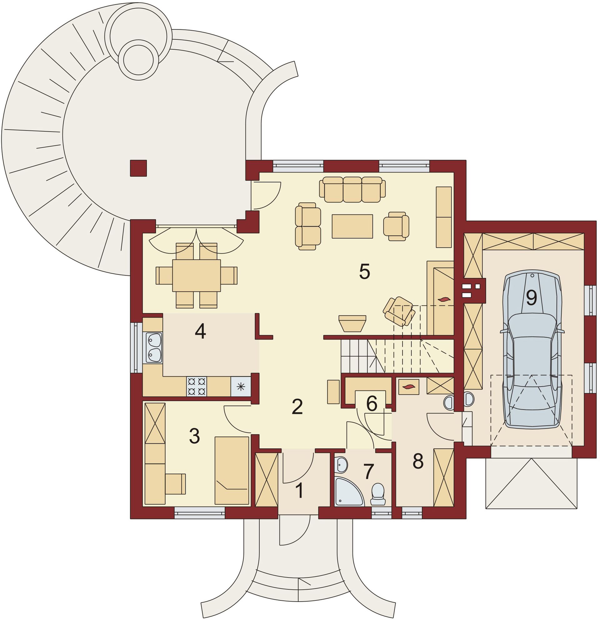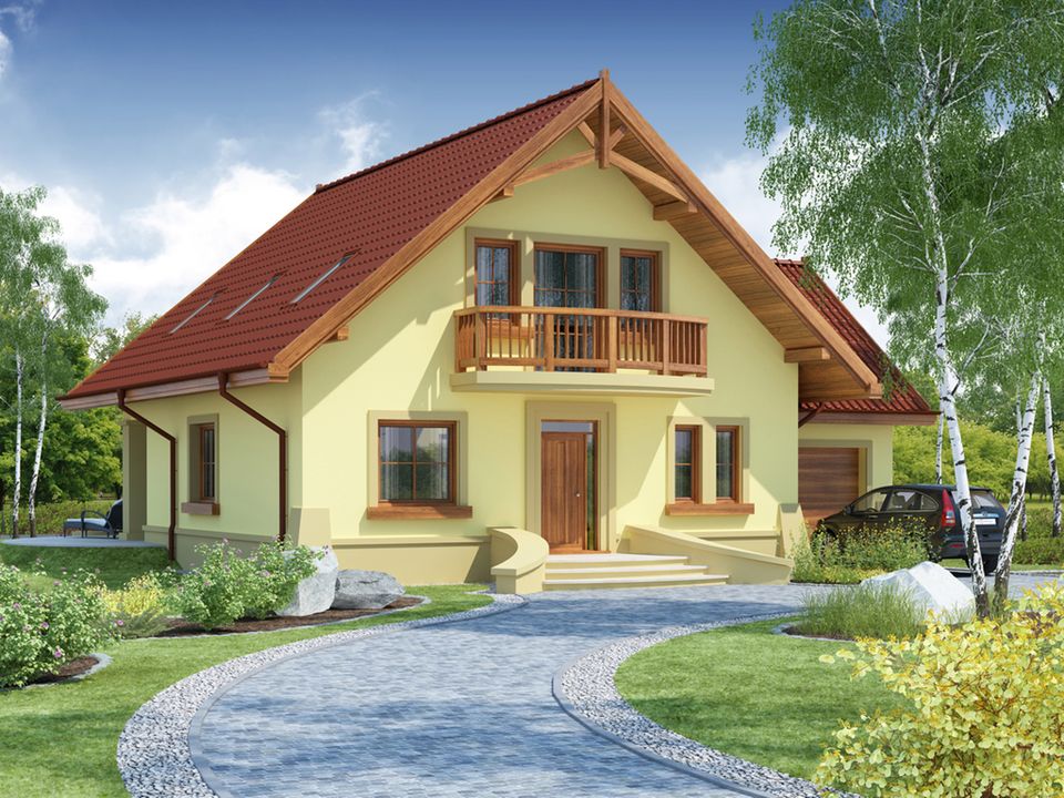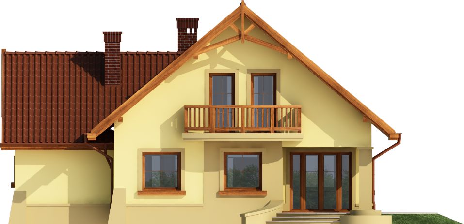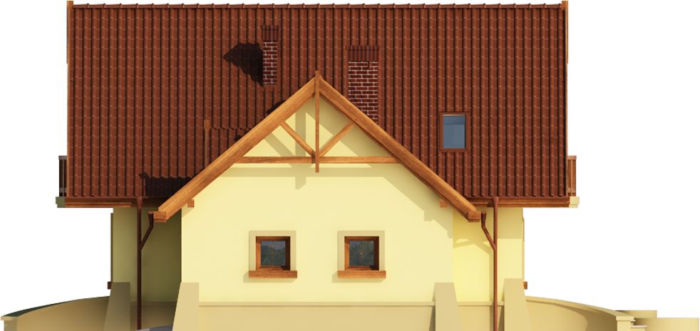 Graficzne opracowanie rzutów poglądowych widocznych na karcie projektu zostało wykonane przez Extradom.pl. Prezentowane przez Extradom.pl wizualizacje wykonane zostały przez autora projektu i należy poczytywać je jedynie za przykład i propozycję wykończenia, wizję architektoniczną autora projektu. Ostateczne wykończenie budynku może nastąpić na wiele sposobów. Szczegółowe rozwiązania zastosowane w oferowanej dokumentacji - w tym również ilość, lokalizacje i wygląd okien, drzwi, kominów - mogą w niewielkim stopniu różnić się od prezentowanej wizualizacji budynku.
