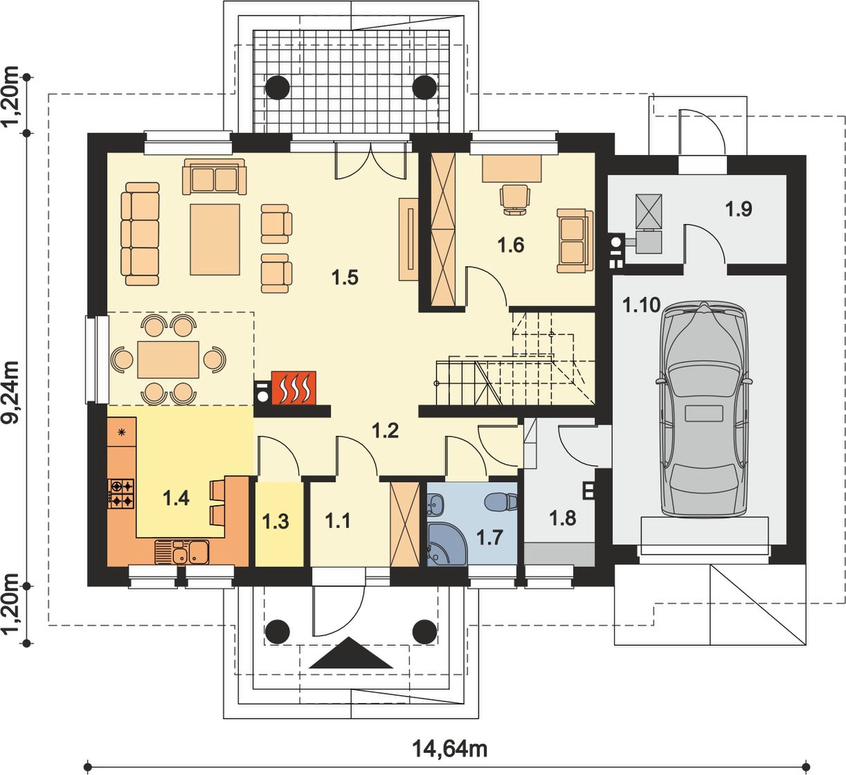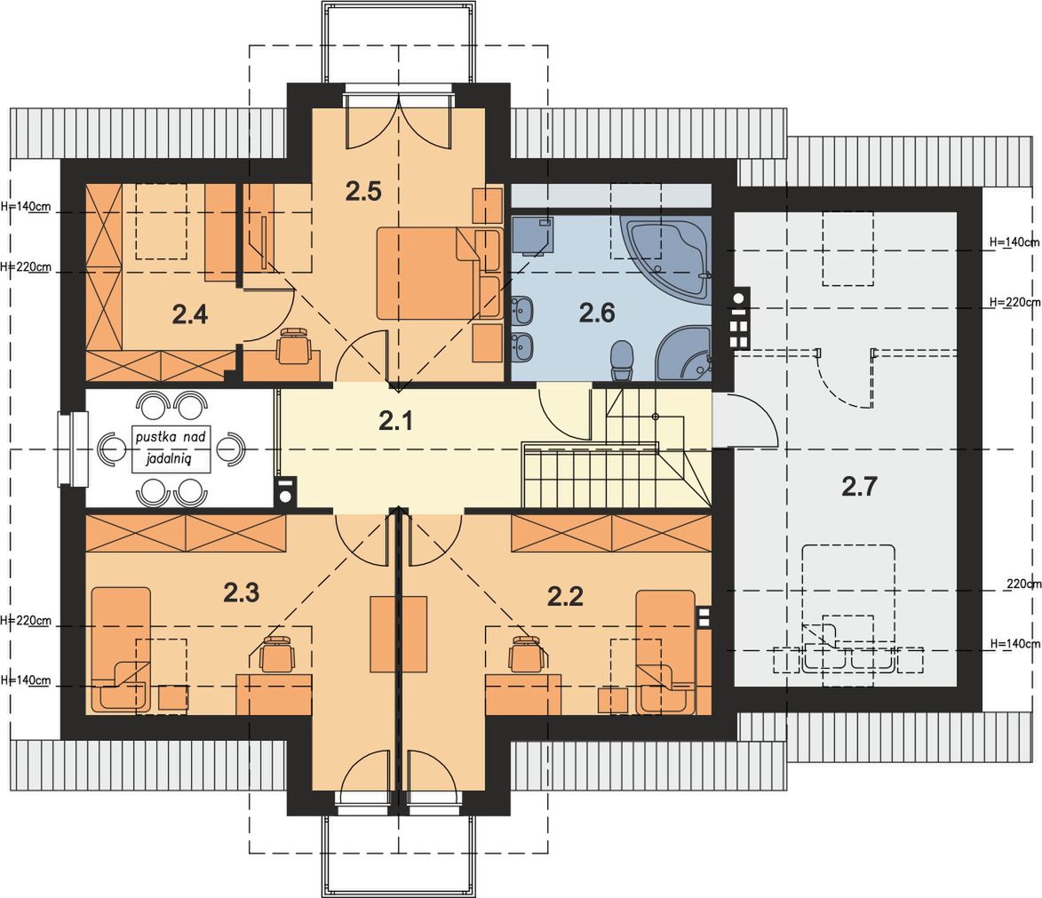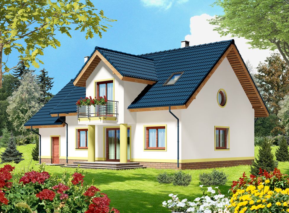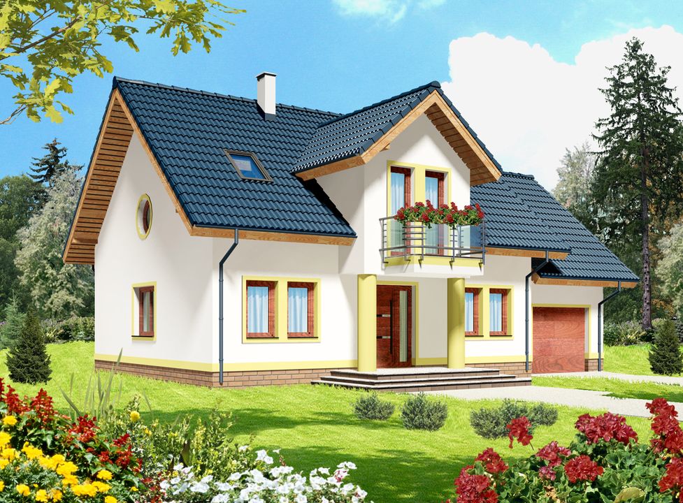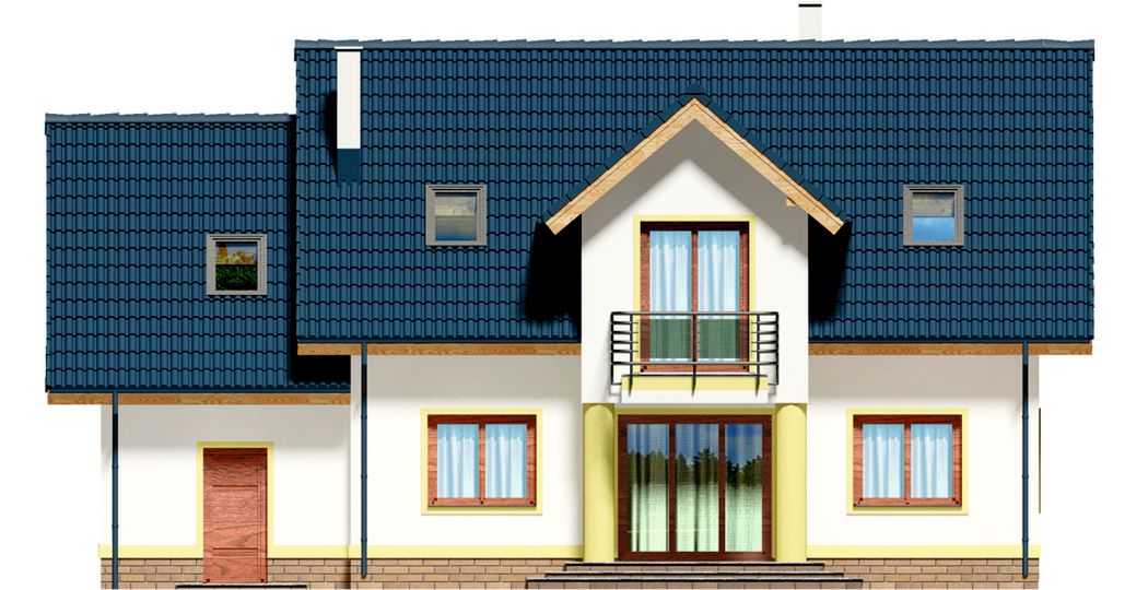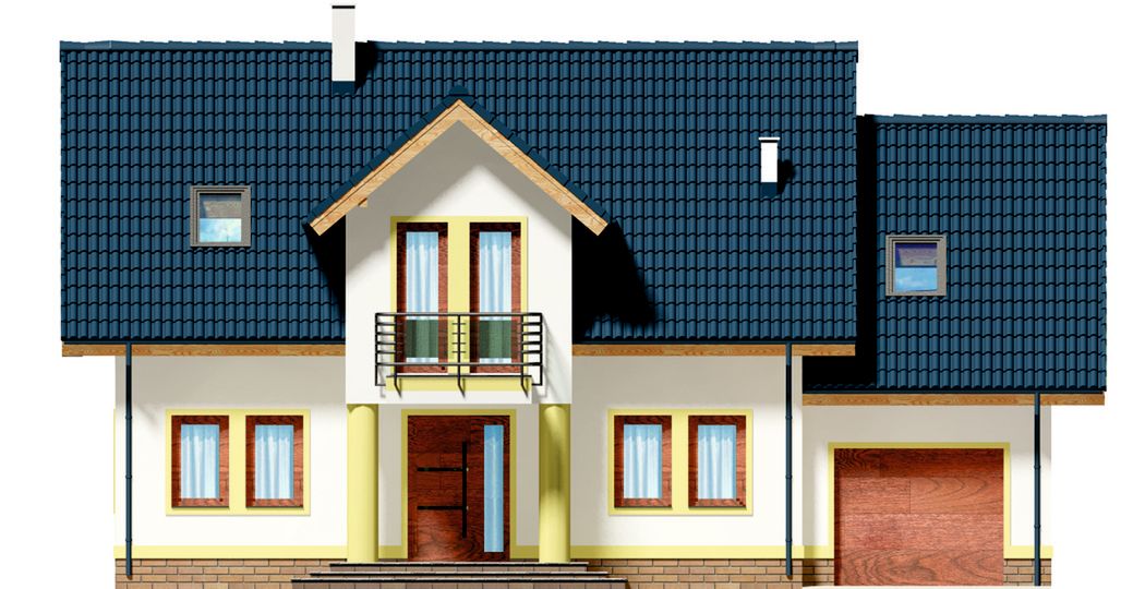 Graficzne opracowanie rzutów poglądowych widocznych na karcie projektu zostało wykonane przez Extradom.pl. Prezentowane przez Extradom.pl wizualizacje wykonane zostały przez autora projektu i należy poczytywać je jedynie za przykład i propozycję wykończenia, wizję architektoniczną autora projektu. Ostateczne wykończenie budynku może nastąpić na wiele sposobów. Szczegółowe rozwiązania zastosowane w oferowanej dokumentacji - w tym również ilość, lokalizacje i wygląd okien, drzwi, kominów - mogą w niewielkim stopniu różnić się od prezentowanej wizualizacji budynku.