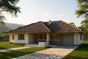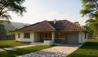 Graficzne opracowanie rzutów poglądowych widocznych na karcie projektu zostało wykonane przez Extradom.pl. Prezentowane przez Extradom.pl wizualizacje wykonane zostały przez autora projektu i należy poczytywać je jedynie za przykład i propozycję wykończenia, wizję architektoniczną autora projektu. Ostateczne wykończenie budynku może nastąpić na wiele sposobów. Szczegółowe rozwiązania zastosowane w oferowanej dokumentacji - w tym również ilość, lokalizacje i wygląd okien, drzwi, kominów - mogą w niewielkim stopniu różnić się od prezentowanej wizualizacji budynku.