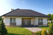 Graficzne opracowanie rzutów poglądowych widocznych na karcie projektu zostało wykonane przez Extradom.pl. Prezentowane przez Extradom.pl wizualizacje wykonane zostały przez autora projektu i należy poczytywać je jedynie za przykład i propozycję wykończenia, wizję architektoniczną autora projektu. Ostateczne wykończenie budynku może nastąpić na wiele sposobów. Szczegółowe rozwiązania zastosowane w oferowanej dokumentacji - w tym również ilość, lokalizacje i wygląd okien, drzwi, kominów - mogą w niewielkim stopniu różnić się od prezentowanej wizualizacji budynku.