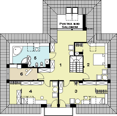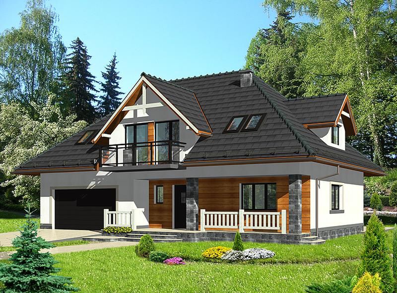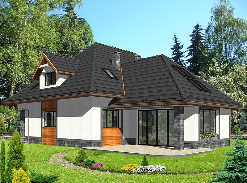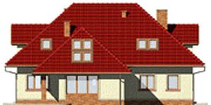 Graficzne opracowanie rzutów poglądowych widocznych na karcie projektu zostało wykonane przez Extradom.pl. Prezentowane przez Extradom.pl wizualizacje wykonane zostały przez autora projektu i należy poczytywać je jedynie za przykład i propozycję wykończenia, wizję architektoniczną autora projektu. Ostateczne wykończenie budynku może nastąpić na wiele sposobów. Szczegółowe rozwiązania zastosowane w oferowanej dokumentacji - w tym również ilość, lokalizacje i wygląd okien, drzwi, kominów - mogą w niewielkim stopniu różnić się od prezentowanej wizualizacji budynku.
