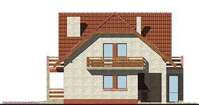Graficzne opracowanie rzutów poglądowych widocznych na karcie projektu zostało wykonane przez Extradom.pl. Prezentowane przez Extradom.pl wizualizacje wykonane zostały przez autora projektu i należy poczytywać je jedynie za przykład i propozycję wykończenia, wizję architektoniczną autora projektu. Ostateczne wykończenie budynku może nastąpić na wiele sposobów. Szczegółowe rozwiązania zastosowane w oferowanej dokumentacji - w tym również ilość, lokalizacje i wygląd okien, drzwi, kominów - mogą w niewielkim stopniu różnić się od prezentowanej wizualizacji budynku.