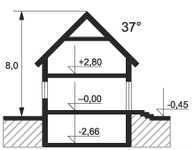 Graficzne opracowanie rzutów poglądowych widocznych na karcie projektu zostało wykonane przez Extradom.pl. Prezentowane przez Extradom.pl wizualizacje wykonane zostały przez autora projektu i należy poczytywać je jedynie za przykład i propozycję wykończenia, wizję architektoniczną autora projektu. Ostateczne wykończenie budynku może nastąpić na wiele sposobów. Szczegółowe rozwiązania zastosowane w oferowanej dokumentacji - w tym również ilość, lokalizacje i wygląd okien, drzwi, kominów - mogą w niewielkim stopniu różnić się od prezentowanej wizualizacji budynku.