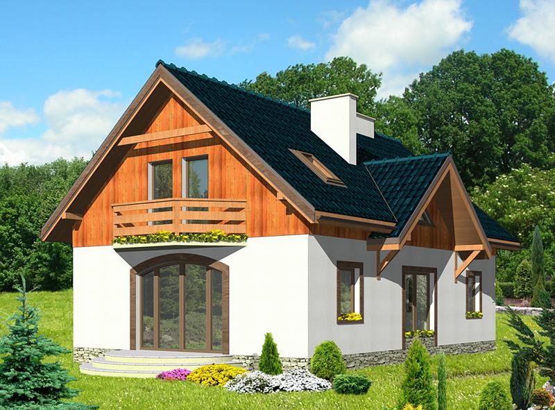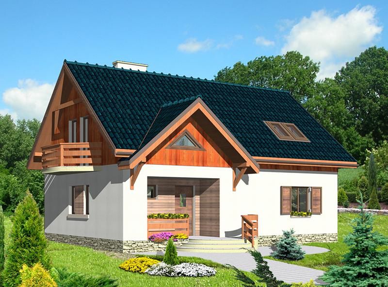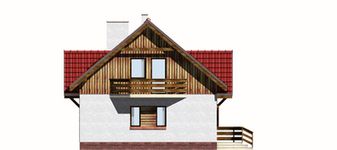 Graficzne opracowanie rzutów poglądowych widocznych na karcie projektu zostało wykonane przez Extradom.pl. Prezentowane przez Extradom.pl wizualizacje wykonane zostały przez autora projektu i należy poczytywać je jedynie za przykład i propozycję wykończenia, wizję architektoniczną autora projektu. Ostateczne wykończenie budynku może nastąpić na wiele sposobów. Szczegółowe rozwiązania zastosowane w oferowanej dokumentacji - w tym również ilość, lokalizacje i wygląd okien, drzwi, kominów - mogą w niewielkim stopniu różnić się od prezentowanej wizualizacji budynku.