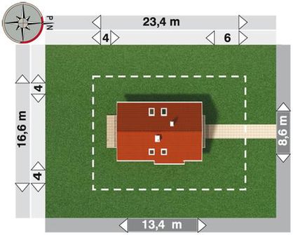 Graficzne opracowanie rzutów poglądowych widocznych na karcie projektu zostało wykonane przez Extradom.pl. Prezentowane przez Extradom.pl wizualizacje wykonane zostały przez autora projektu i należy poczytywać je jedynie za przykład i propozycję wykończenia, wizję architektoniczną autora projektu. Ostateczne wykończenie budynku może nastąpić na wiele sposobów. Szczegółowe rozwiązania zastosowane w oferowanej dokumentacji - w tym również ilość, lokalizacje i wygląd okien, drzwi, kominów - mogą w niewielkim stopniu różnić się od prezentowanej wizualizacji budynku.