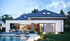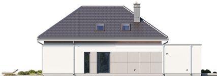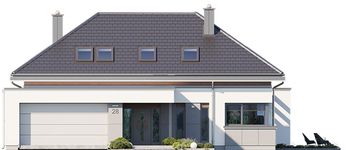 Graficzne opracowanie rzutów poglądowych widocznych na karcie projektu zostało wykonane przez Extradom.pl. Prezentowane przez Extradom.pl wizualizacje wykonane zostały przez autora projektu i należy poczytywać je jedynie za przykład i propozycję wykończenia, wizję architektoniczną autora projektu. Ostateczne wykończenie budynku może nastąpić na wiele sposobów. Szczegółowe rozwiązania zastosowane w oferowanej dokumentacji - w tym również ilość, lokalizacje i wygląd okien, drzwi, kominów - mogą w niewielkim stopniu różnić się od prezentowanej wizualizacji budynku.