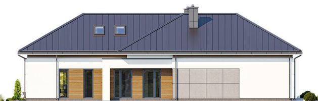 Graficzne opracowanie rzutów poglądowych widocznych na karcie projektu zostało wykonane przez Extradom.pl. Prezentowane przez Extradom.pl wizualizacje wykonane zostały przez autora projektu i należy poczytywać je jedynie za przykład i propozycję wykończenia, wizję architektoniczną autora projektu. Ostateczne wykończenie budynku może nastąpić na wiele sposobów. Szczegółowe rozwiązania zastosowane w oferowanej dokumentacji - w tym również ilość, lokalizacje i wygląd okien, drzwi, kominów - mogą w niewielkim stopniu różnić się od prezentowanej wizualizacji budynku.