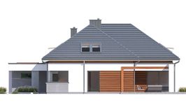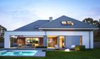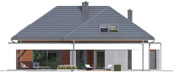 Graficzne opracowanie rzutów poglądowych widocznych na karcie projektu zostało wykonane przez Extradom.pl. Prezentowane przez Extradom.pl wizualizacje wykonane zostały przez autora projektu i należy poczytywać je jedynie za przykład i propozycję wykończenia, wizję architektoniczną autora projektu. Ostateczne wykończenie budynku może nastąpić na wiele sposobów. Szczegółowe rozwiązania zastosowane w oferowanej dokumentacji - w tym również ilość, lokalizacje i wygląd okien, drzwi, kominów - mogą w niewielkim stopniu różnić się od prezentowanej wizualizacji budynku.