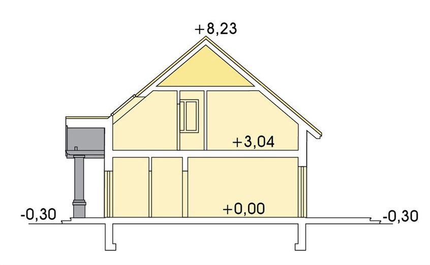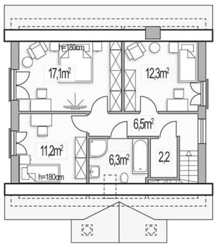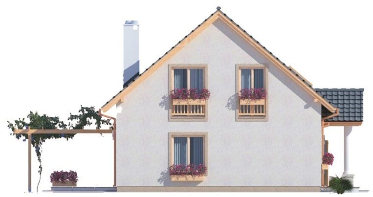 Graficzne opracowanie rzutów poglądowych widocznych na karcie projektu zostało wykonane przez Extradom.pl. Prezentowane przez Extradom.pl wizualizacje wykonane zostały przez autora projektu i należy poczytywać je jedynie za przykład i propozycję wykończenia, wizję architektoniczną autora projektu. Ostateczne wykończenie budynku może nastąpić na wiele sposobów. Szczegółowe rozwiązania zastosowane w oferowanej dokumentacji - w tym również ilość, lokalizacje i wygląd okien, drzwi, kominów - mogą w niewielkim stopniu różnić się od prezentowanej wizualizacji budynku.