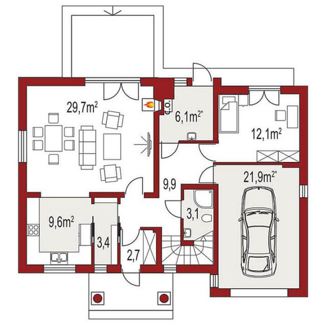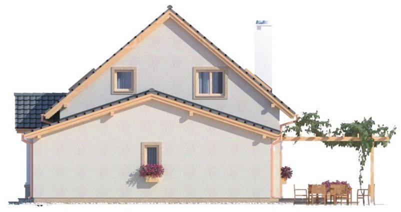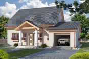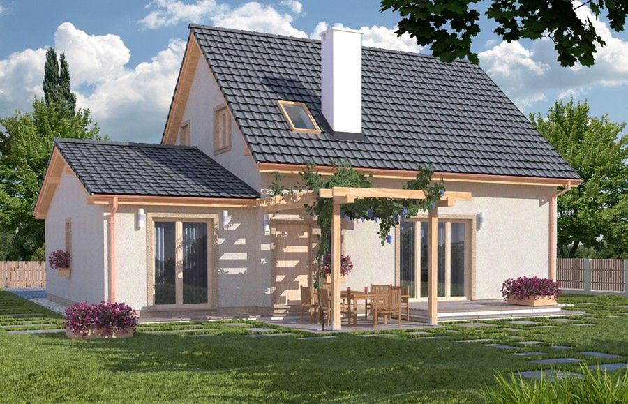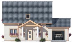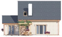 Graficzne opracowanie rzutów poglądowych widocznych na karcie projektu zostało wykonane przez Extradom.pl. Prezentowane przez Extradom.pl wizualizacje wykonane zostały przez autora projektu i należy poczytywać je jedynie za przykład i propozycję wykończenia, wizję architektoniczną autora projektu. Ostateczne wykończenie budynku może nastąpić na wiele sposobów. Szczegółowe rozwiązania zastosowane w oferowanej dokumentacji - w tym również ilość, lokalizacje i wygląd okien, drzwi, kominów - mogą w niewielkim stopniu różnić się od prezentowanej wizualizacji budynku.