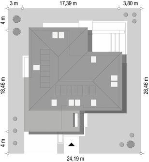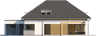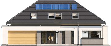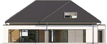 Graficzne opracowanie rzutów poglądowych widocznych na karcie projektu zostało wykonane przez Extradom.pl. Prezentowane przez Extradom.pl wizualizacje wykonane zostały przez autora projektu i należy poczytywać je jedynie za przykład i propozycję wykończenia, wizję architektoniczną autora projektu. Ostateczne wykończenie budynku może nastąpić na wiele sposobów. Szczegółowe rozwiązania zastosowane w oferowanej dokumentacji - w tym również ilość, lokalizacje i wygląd okien, drzwi, kominów - mogą w niewielkim stopniu różnić się od prezentowanej wizualizacji budynku.