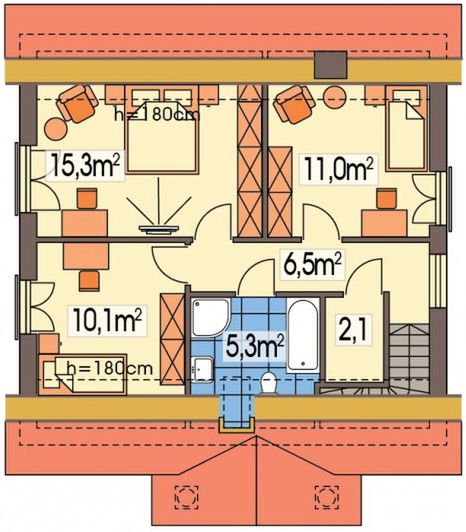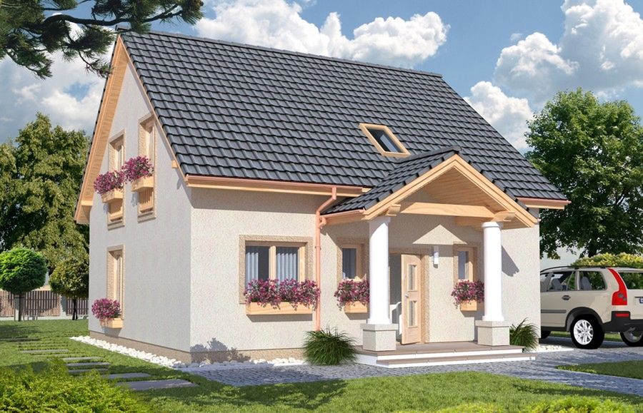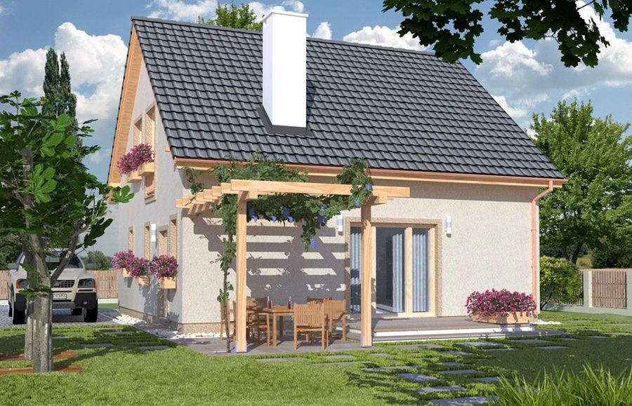 Graficzne opracowanie rzutów poglądowych widocznych na karcie projektu zostało wykonane przez Extradom.pl. Prezentowane przez Extradom.pl wizualizacje wykonane zostały przez autora projektu i należy poczytywać je jedynie za przykład i propozycję wykończenia, wizję architektoniczną autora projektu. Ostateczne wykończenie budynku może nastąpić na wiele sposobów. Szczegółowe rozwiązania zastosowane w oferowanej dokumentacji - w tym również ilość, lokalizacje i wygląd okien, drzwi, kominów - mogą w niewielkim stopniu różnić się od prezentowanej wizualizacji budynku.