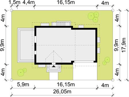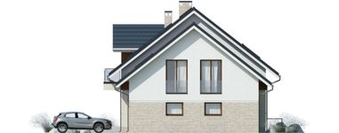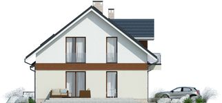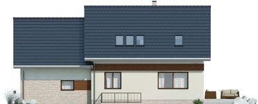 Graficzne opracowanie rzutów poglądowych widocznych na karcie projektu zostało wykonane przez Extradom.pl. Prezentowane przez Extradom.pl wizualizacje wykonane zostały przez autora projektu i należy poczytywać je jedynie za przykład i propozycję wykończenia, wizję architektoniczną autora projektu. Ostateczne wykończenie budynku może nastąpić na wiele sposobów. Szczegółowe rozwiązania zastosowane w oferowanej dokumentacji - w tym również ilość, lokalizacje i wygląd okien, drzwi, kominów - mogą w niewielkim stopniu różnić się od prezentowanej wizualizacji budynku.