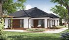 Graficzne opracowanie rzutów poglądowych widocznych na karcie projektu zostało wykonane przez Extradom.pl. Prezentowane przez Extradom.pl wizualizacje wykonane zostały przez autora projektu i należy poczytywać je jedynie za przykład i propozycję wykończenia, wizję architektoniczną autora projektu. Ostateczne wykończenie budynku może nastąpić na wiele sposobów. Szczegółowe rozwiązania zastosowane w oferowanej dokumentacji - w tym również ilość, lokalizacje i wygląd okien, drzwi, kominów - mogą w niewielkim stopniu różnić się od prezentowanej wizualizacji budynku.