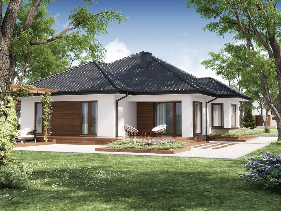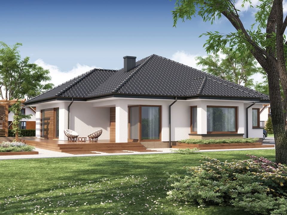 Zdecydowaliśmy się na projekt Hipokrates WRW1102, ponieważ odpowiadał nam pod wieloma względami. Od początku zależało nam na domku parterowym, a oryginalna konstrukcja łamanego dachu wyjątkowo przypadła nam do gustu. Przewidziany w nim układ pomieszczeń również spełniał nasze oczekiwania. Uwzględniono w nim praktyczną pralnio-suszarnię, a ilość pokoi była odpowiednia. Dodatkowo, spodobało mi się połączenie sypialni z prywatną łazienką oraz możliwość zaadaptowania poddasza. Cała realizacja przebiegła w naszym przypadku wyjątkowo sprawnie i naprawdę szybko. Od pierwszego „wbicia łopaty” do wprowadzenia się do nowego i w pełni wykończonego domu minęło zaledwie 8,5 miesiąca. Zatrudnioną przez nas firmę tworzyła ekipa doświadczonych i profesjonalnych fachowców, którzy z niczym nie mieli problemu. Projekt nie zawierał błędów, a konstrukcja budynku jest nieskomplikowana i tym samym prosta w realizacji. Wszystko było świetnie zorganizowane z czego jestem naprawdę zadowolona. Nasz dom wymurowano z pustaków, a następnie ocieplono 10 cm warstwą grafitowego styropianu najlepszej jakości. Taki mur sprawia, że koszty późniejszej eksploatacji są naprawdę niewielkie. W sezonie letnim do podgrzewania wody użytkowej służy nam piec gazowy, natomiast wnętrze domu w zimie ogrzewamy za pomocą kominka z płaszczem wodnym. Na cały sezon grzewczy bez problemu wystarcza nam 15 m³ drewna. Kupujemy drewno mieszane (buk i sosna) w cenie 100 zł za jeden kubik, więc przez cały ten okres wydajemy na ogrzewanie 1500zł. W lecie rachunki za gaz wynoszą nas miesięcznie ok. 100 zł. Wewnętrzny układ zaproponowany w projekcie Hipokrates WRW1102 od początku w całości nam odpowiadał, dlatego postanowiliśmy nie wprowadzać do niego żadnych zmian. Z perspektywy czasu widzę, iż połączenie sypialni z łazienką, które wcześniej bardzo mi się podobało, nie jest jednak najlepszym pomysłem. Na tą chwilę zrezygnowałabym z tego rozwiązania i wejście do tej łazienki zrobiłabym od strony korytarza. Obecnie mamy z mężem dwójkę dzieci, więc ilość pokoi jest dla nas wystarczająca. Myślimy jednak o jeszcze jednym dziecku i obawiam się, że 5-osobowej rodzinie na takim metrażu będzie już mniej komfortowo. Muszę przyznać, że z tego powodu żałuję, iż od razu nie zdecydowałam się na podniesienie ścianki kolankowej, zrobienie schodów i zaadaptowanie poddasza. Gdybyśmy chcieli zrobić to teraz, sporo by to kosztowało. Nie wykluczam więc, że może w przyszłości zechcemy sprzedać ten dom i zbudować większy. Mimo to, uważam że wybór projektu domu parterowego Hipokrates WRW1102 był naprawdę dobrą decyzją. Dzięki zdecydowaniu się na jego wersję lustrzaną, wnętrze naszego domu jest doskonale oświetlone, gdyż praktycznie przez cały dzień słońce wpada do salonu. Układ pomieszczeń został bardzo funkcjonalnie przemyślany z czego również się cieszę. Myślę, jednak że przy rozpoczęciu jego realizacji, warto od razu rozważyć adaptację poddasza. Pozdrawiam.