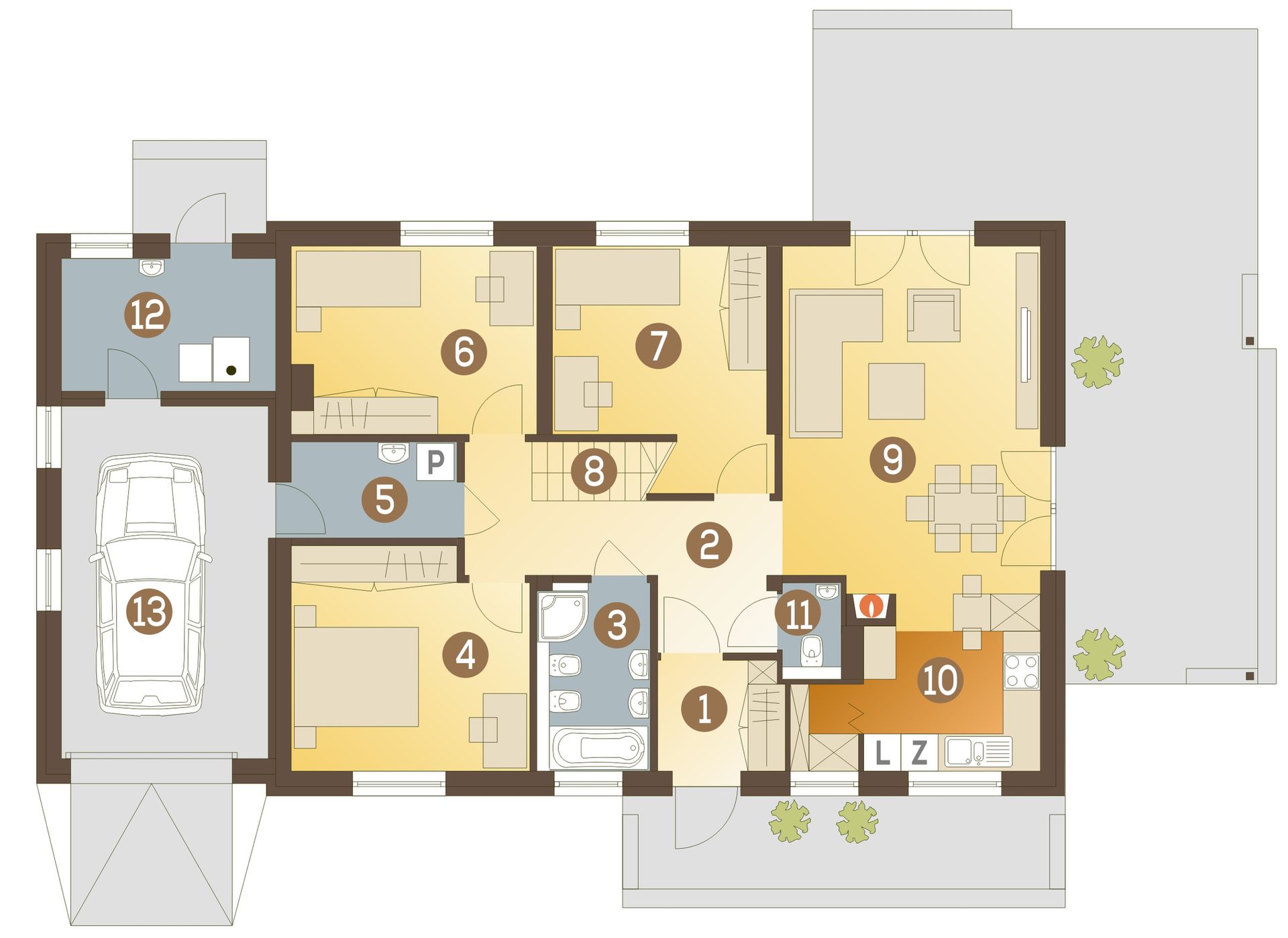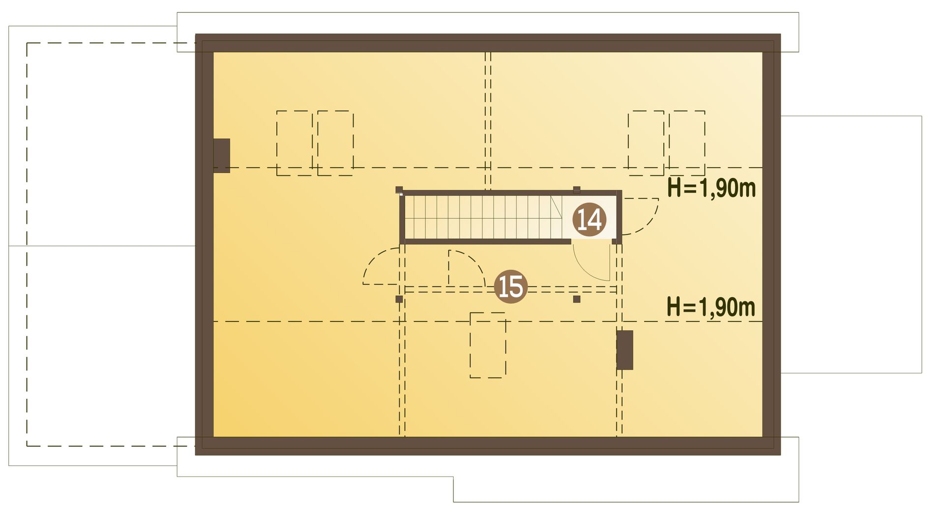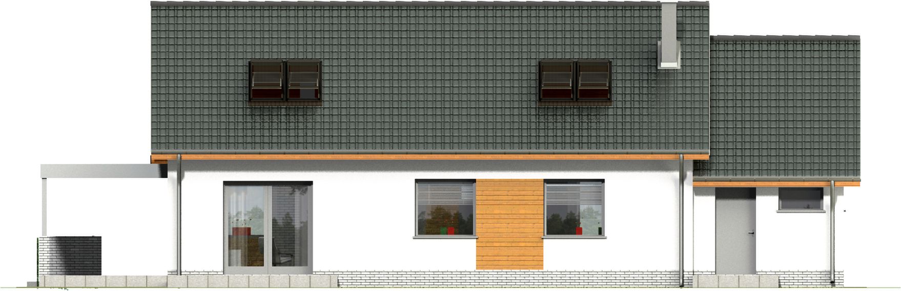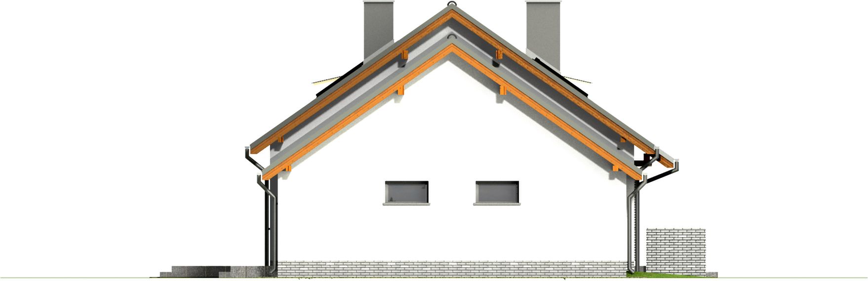 Graficzne opracowanie rzutów poglądowych widocznych na karcie projektu zostało wykonane przez Extradom.pl. Prezentowane przez Extradom.pl wizualizacje wykonane zostały przez autora projektu i należy poczytywać je jedynie za przykład i propozycję wykończenia, wizję architektoniczną autora projektu. Ostateczne wykończenie budynku może nastąpić na wiele sposobów. Szczegółowe rozwiązania zastosowane w oferowanej dokumentacji - w tym również ilość, lokalizacje i wygląd okien, drzwi, kominów - mogą w niewielkim stopniu różnić się od prezentowanej wizualizacji budynku.