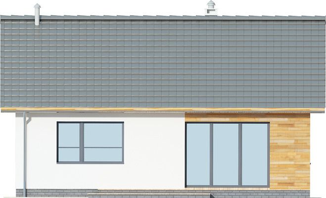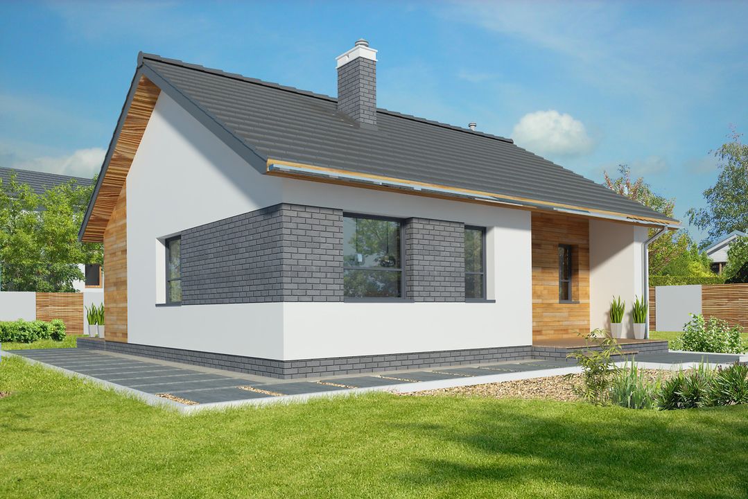 Graficzne opracowanie rzutów poglądowych widocznych na karcie projektu zostało wykonane przez Extradom.pl. Prezentowane przez Extradom.pl wizualizacje wykonane zostały przez autora projektu i należy poczytywać je jedynie za przykład i propozycję wykończenia, wizję architektoniczną autora projektu. Ostateczne wykończenie budynku może nastąpić na wiele sposobów. Szczegółowe rozwiązania zastosowane w oferowanej dokumentacji - w tym również ilość, lokalizacje i wygląd okien, drzwi, kominów - mogą w niewielkim stopniu różnić się od prezentowanej wizualizacji budynku.