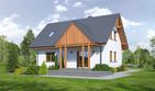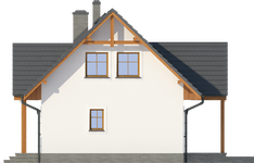 Graficzne opracowanie rzutów poglądowych widocznych na karcie projektu zostało wykonane przez Extradom.pl. Prezentowane przez Extradom.pl wizualizacje wykonane zostały przez autora projektu i należy poczytywać je jedynie za przykład i propozycję wykończenia, wizję architektoniczną autora projektu. Ostateczne wykończenie budynku może nastąpić na wiele sposobów. Szczegółowe rozwiązania zastosowane w oferowanej dokumentacji - w tym również ilość, lokalizacje i wygląd okien, drzwi, kominów - mogą w niewielkim stopniu różnić się od prezentowanej wizualizacji budynku.