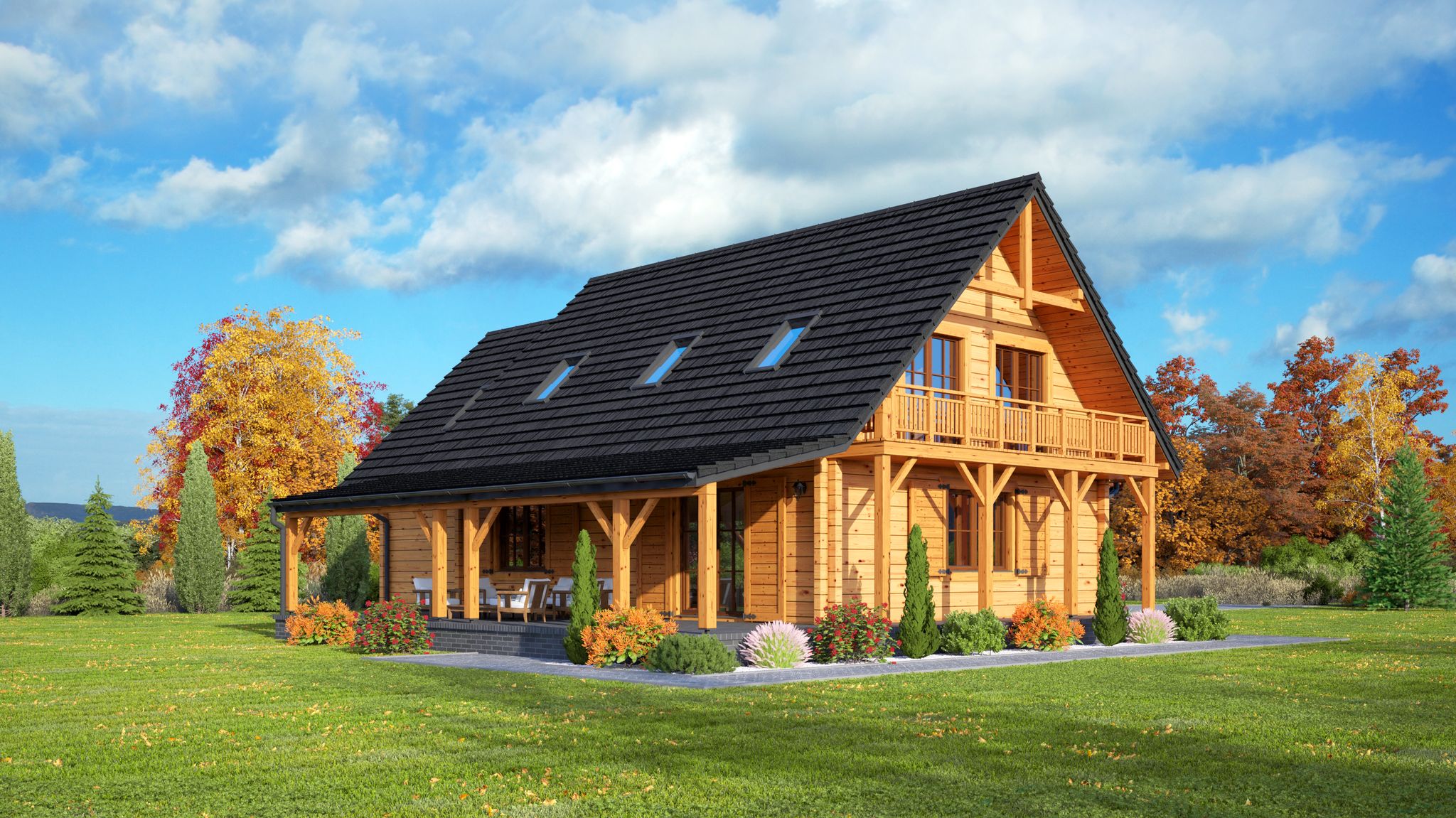 Hoczew 17 dw to urokliwy dom z bali z użytkowym poddaszem i garażem, idealny dla 4- do 6-osobowej rodziny ceniącej tradycyjny styl, bliskość natury oraz energooszczędność wynikającą z technologii drewnianej. Oferuje 128,18 m² powierzchni użytkowej i jest doskonałym wyborem zarówno jako dom całoroczny, jak i rekreacyjny.