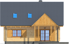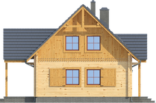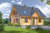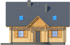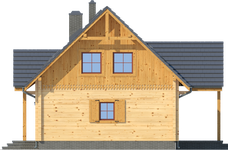 Wysokość ścianki kolankowej: 0.86 m. Strop: drewniany. Pokrycie dachu: dachówka gontopodobna Gerard Corona. Ściany zewnętrzne: płazy drewniane + wełna mineralna + deska. Ściany wewnętrzne: płazy drewniane. Typ ogrzewania: kocioł gazowy lub kocioł na paliwo stałe. Inne: okna dachowe Fakro Greenview.