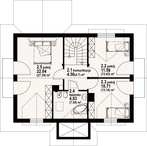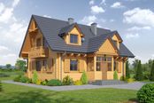 Graficzne opracowanie rzutów poglądowych widocznych na karcie projektu zostało wykonane przez Extradom.pl. Prezentowane przez Extradom.pl wizualizacje wykonane zostały przez autora projektu i należy poczytywać je jedynie za przykład i propozycję wykończenia, wizję architektoniczną autora projektu. Ostateczne wykończenie budynku może nastąpić na wiele sposobów. Szczegółowe rozwiązania zastosowane w oferowanej dokumentacji - w tym również ilość, lokalizacje i wygląd okien, drzwi, kominów - mogą w niewielkim stopniu różnić się od prezentowanej wizualizacji budynku.