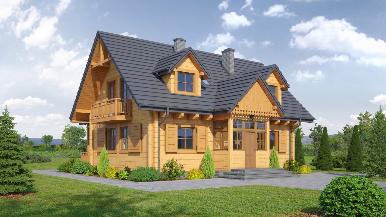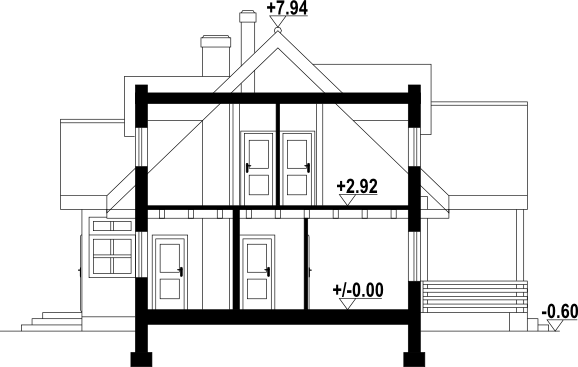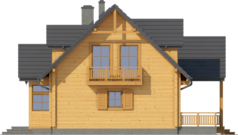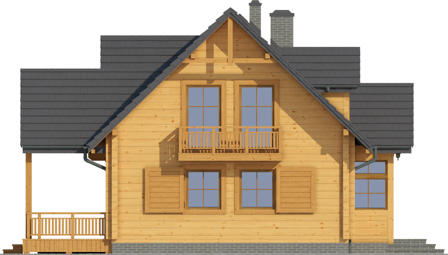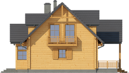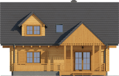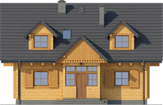 Wysokość ścianki kolankowej: 0.86 m. Strop: drewniany. Pokrycie dachu: dachówka gontopodobna Gerard Corona. Ściany zewnętrzne: płazy drewniane + wełna mineralna + deska. Ściany wewnętrzne: płazy drewniane. Typ ogrzewania: kocioł gazowy lub kocioł na paliwo stałe. Inne: okna połaciowe Fakro.
