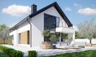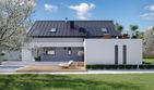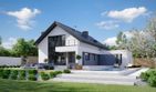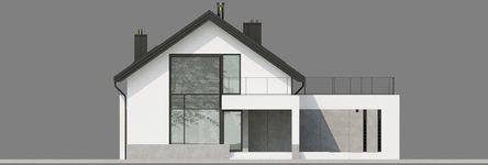 Graficzne opracowanie rzutów poglądowych widocznych na karcie projektu zostało wykonane przez Extradom.pl. Prezentowane przez Extradom.pl wizualizacje wykonane zostały przez autora projektu i należy poczytywać je jedynie za przykład i propozycję wykończenia, wizję architektoniczną autora projektu. Ostateczne wykończenie budynku może nastąpić na wiele sposobów. Szczegółowe rozwiązania zastosowane w oferowanej dokumentacji - w tym również ilość, lokalizacje i wygląd okien, drzwi, kominów - mogą w niewielkim stopniu różnić się od prezentowanej wizualizacji budynku.