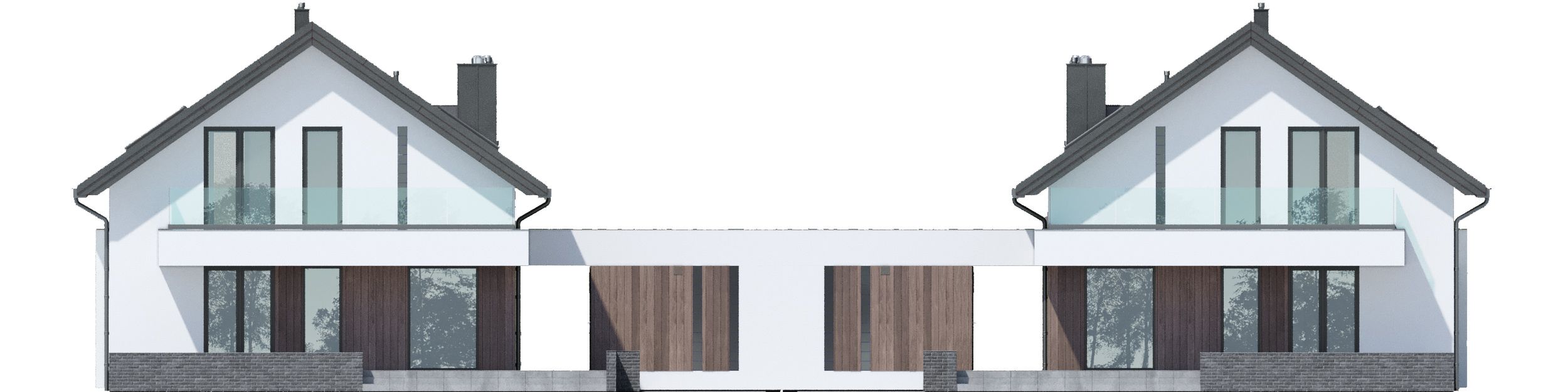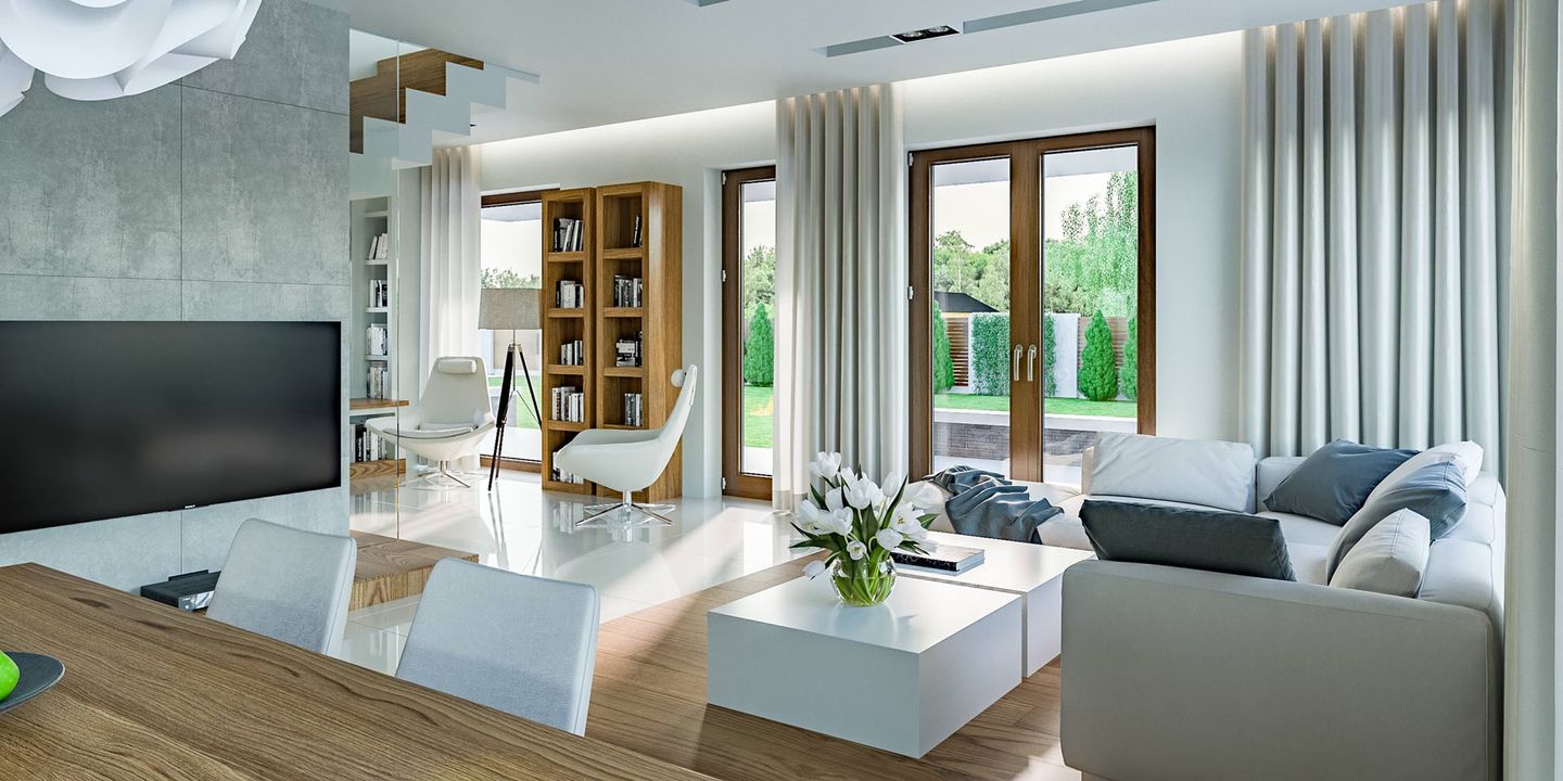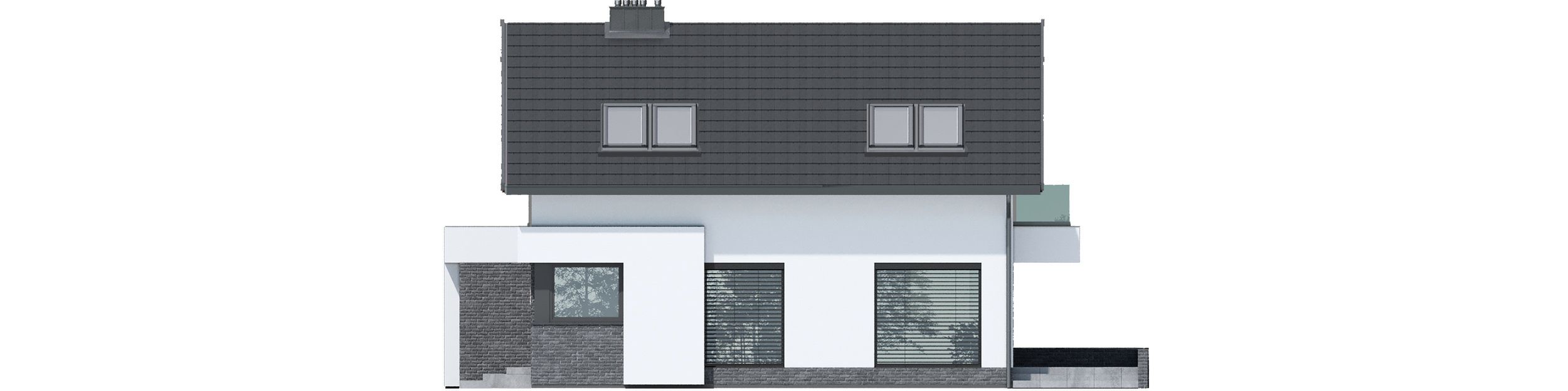 Graficzne opracowanie rzutów poglądowych widocznych na karcie projektu zostało wykonane przez Extradom.pl. Prezentowane przez Extradom.pl wizualizacje wykonane zostały przez autora projektu i należy poczytywać je jedynie za przykład i propozycję wykończenia, wizję architektoniczną autora projektu. Ostateczne wykończenie budynku może nastąpić na wiele sposobów. Szczegółowe rozwiązania zastosowane w oferowanej dokumentacji - w tym również ilość, lokalizacje i wygląd okien, drzwi, kominów - mogą w niewielkim stopniu różnić się od prezentowanej wizualizacji budynku.