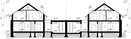 Fundamenty: tradycyjne - na ławach fundamentowych. Ściany: dwuwarstwowe - pustak ceramiczny 25 cm + styropian 15 cm/wełna mineralna. Stropy: żelbetowe wylewane schody jednobiegowe żelbetowe dach tradycyjna więźba dachowa pokryta dachówką ceramiczną lub cementową. Elewacja: płytka klinkierowa połączona z tynkiem i deskami elewacyjnymi thermory thermo jesion amerykański firmy komplex market. Ogrzewanie: gazowe - piec kondensacyjny. grzejniki kanałowe przy dużych przeszkleniach na parterze oraz tradycyjne grzejniki w pozostałych pomieszczeniac. Wentylacja grawitacyjna.