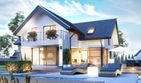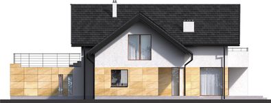 Graficzne opracowanie rzutów poglądowych widocznych na karcie projektu zostało wykonane przez Extradom.pl. Prezentowane przez Extradom.pl wizualizacje wykonane zostały przez autora projektu i należy poczytywać je jedynie za przykład i propozycję wykończenia, wizję architektoniczną autora projektu. Ostateczne wykończenie budynku może nastąpić na wiele sposobów. Szczegółowe rozwiązania zastosowane w oferowanej dokumentacji - w tym również ilość, lokalizacje i wygląd okien, drzwi, kominów - mogą w niewielkim stopniu różnić się od prezentowanej wizualizacji budynku.