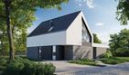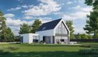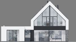 Graficzne opracowanie rzutów poglądowych widocznych na karcie projektu zostało wykonane przez Extradom.pl. Prezentowane przez Extradom.pl wizualizacje wykonane zostały przez autora projektu i należy poczytywać je jedynie za przykład i propozycję wykończenia, wizję architektoniczną autora projektu. Ostateczne wykończenie budynku może nastąpić na wiele sposobów. Szczegółowe rozwiązania zastosowane w oferowanej dokumentacji - w tym również ilość, lokalizacje i wygląd okien, drzwi, kominów - mogą w niewielkim stopniu różnić się od prezentowanej wizualizacji budynku.