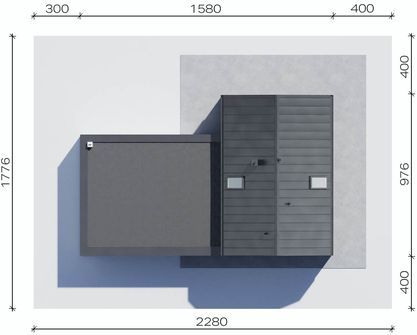 Graficzne opracowanie rzutów poglądowych widocznych na karcie projektu zostało wykonane przez Extradom.pl. Prezentowane przez Extradom.pl wizualizacje wykonane zostały przez autora projektu i należy poczytywać je jedynie za przykład i propozycję wykończenia, wizję architektoniczną autora projektu. Ostateczne wykończenie budynku może nastąpić na wiele sposobów. Szczegółowe rozwiązania zastosowane w oferowanej dokumentacji - w tym również ilość, lokalizacje i wygląd okien, drzwi, kominów - mogą w niewielkim stopniu różnić się od prezentowanej wizualizacji budynku.